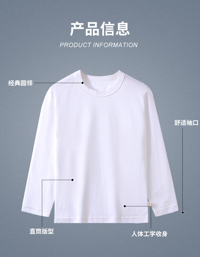 아동용 순면 흰색 긴팔 티셔츠, 남아용 순면 흰색 바닥 셔츠, 여아용 흰색 이너탑, 얇은 가을옷