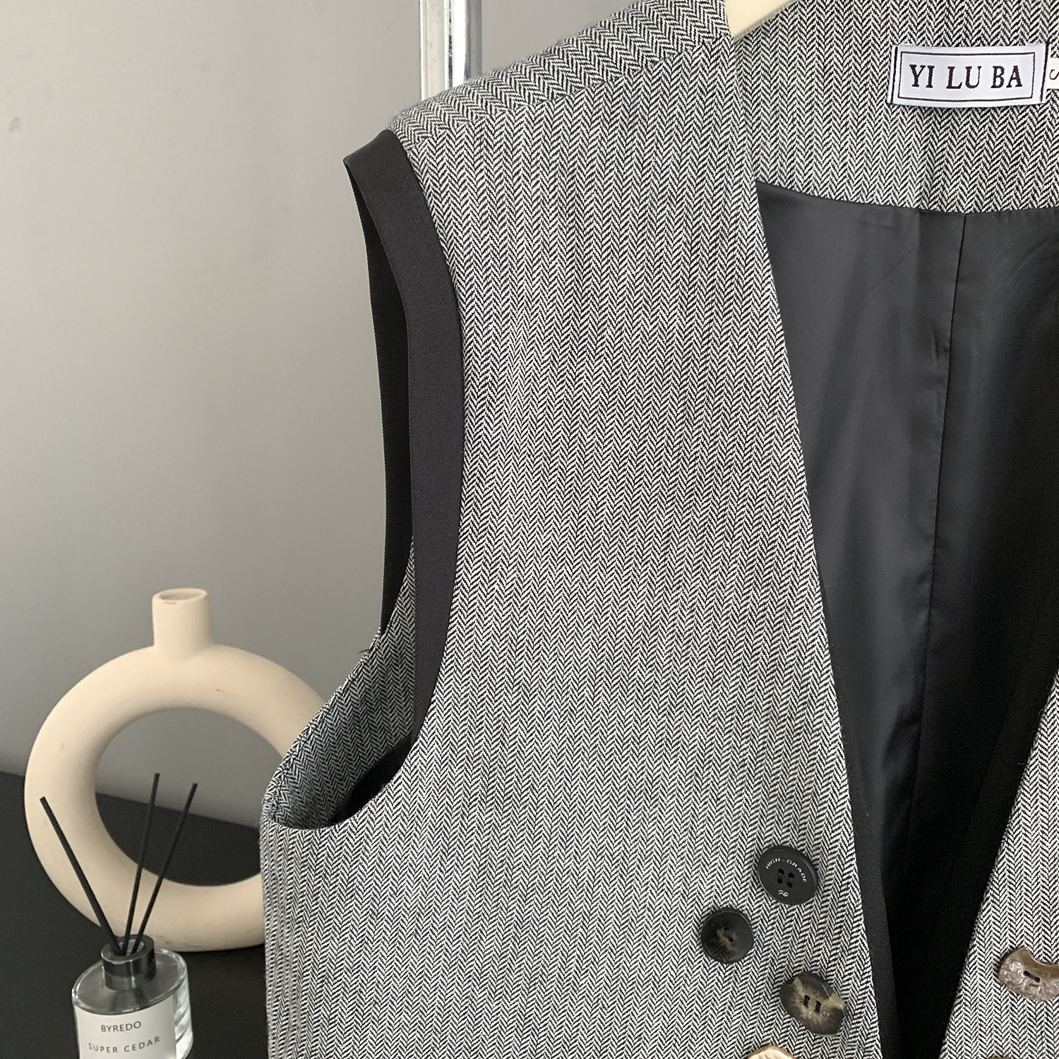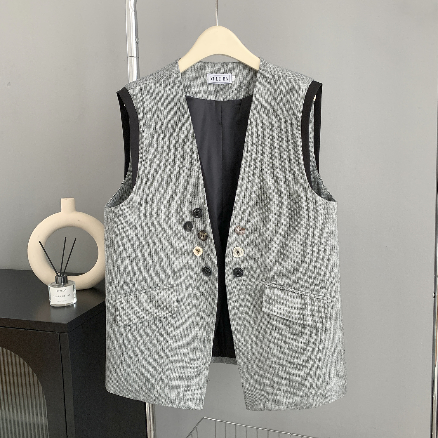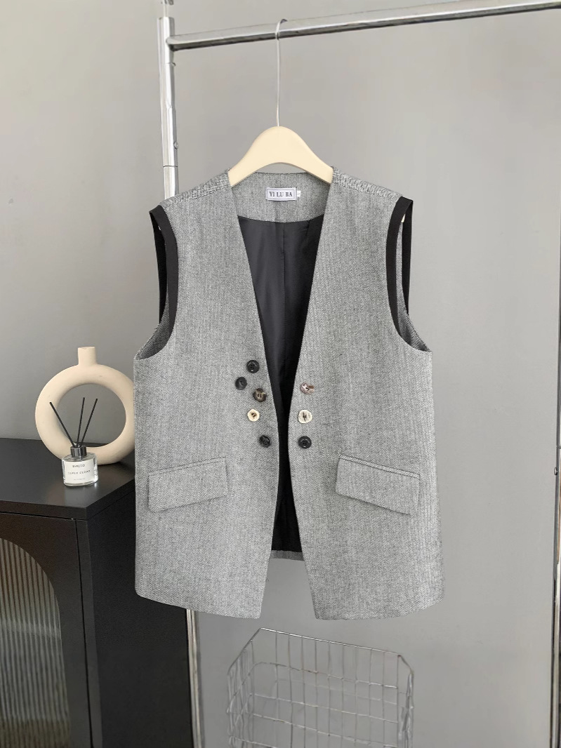 여성을위한 유럽 버전 디자인 가짜 투피스 중간 길이 양복 조끼 봄 새로운 스타일 작은 향기 스플 라이스 대비 색 조끼스토어 가기