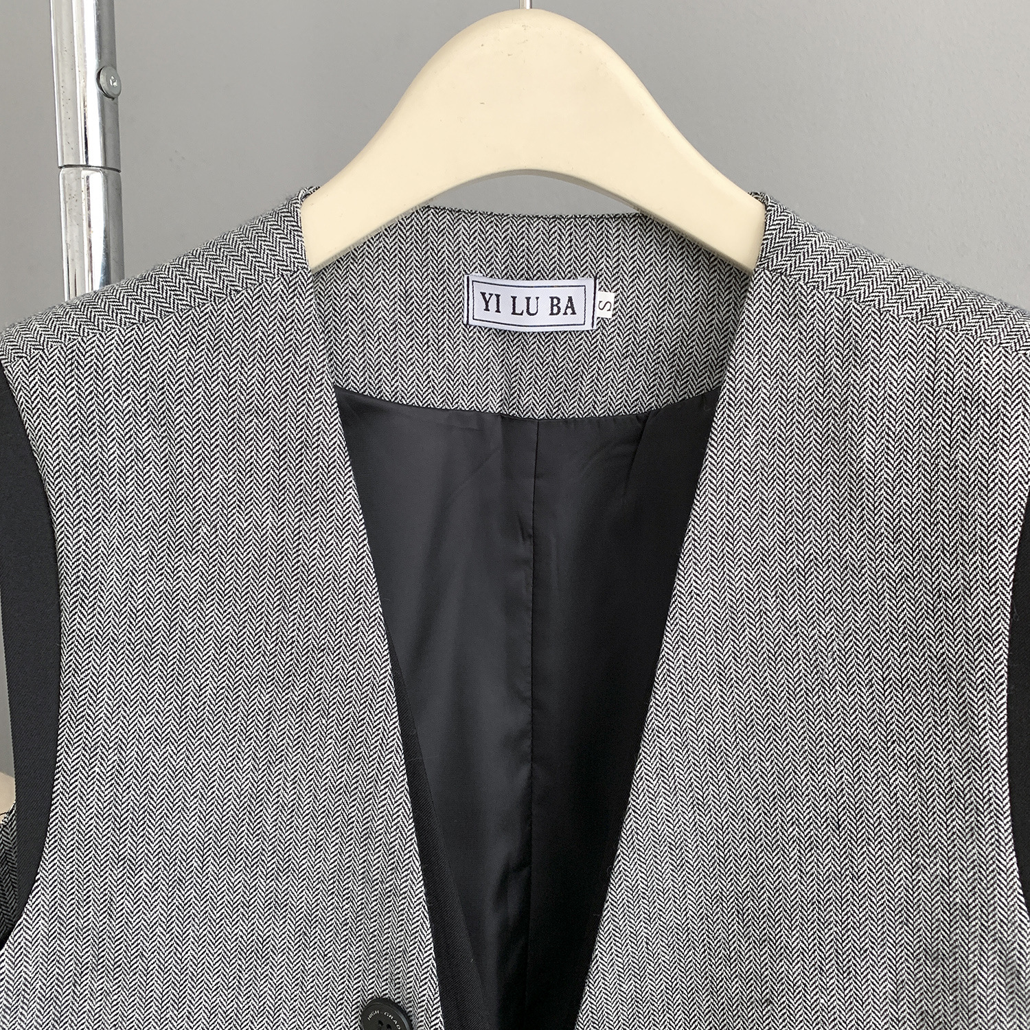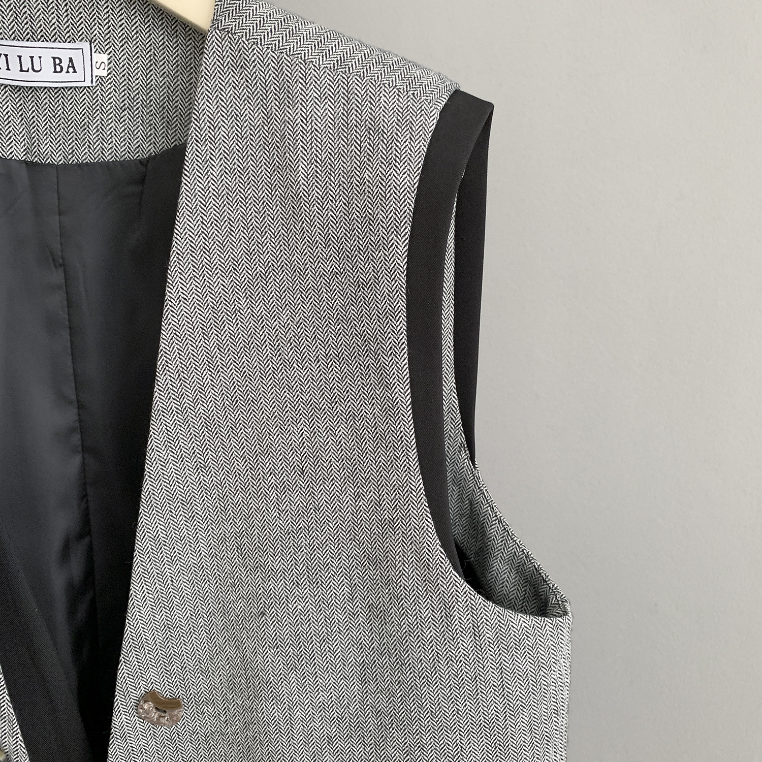 여성을위한 유럽 버전 디자인 가짜 투피스 중간 길이 양복 조끼 봄 새로운 스타일 작은 향기 스플 라이스 대비 색 조끼