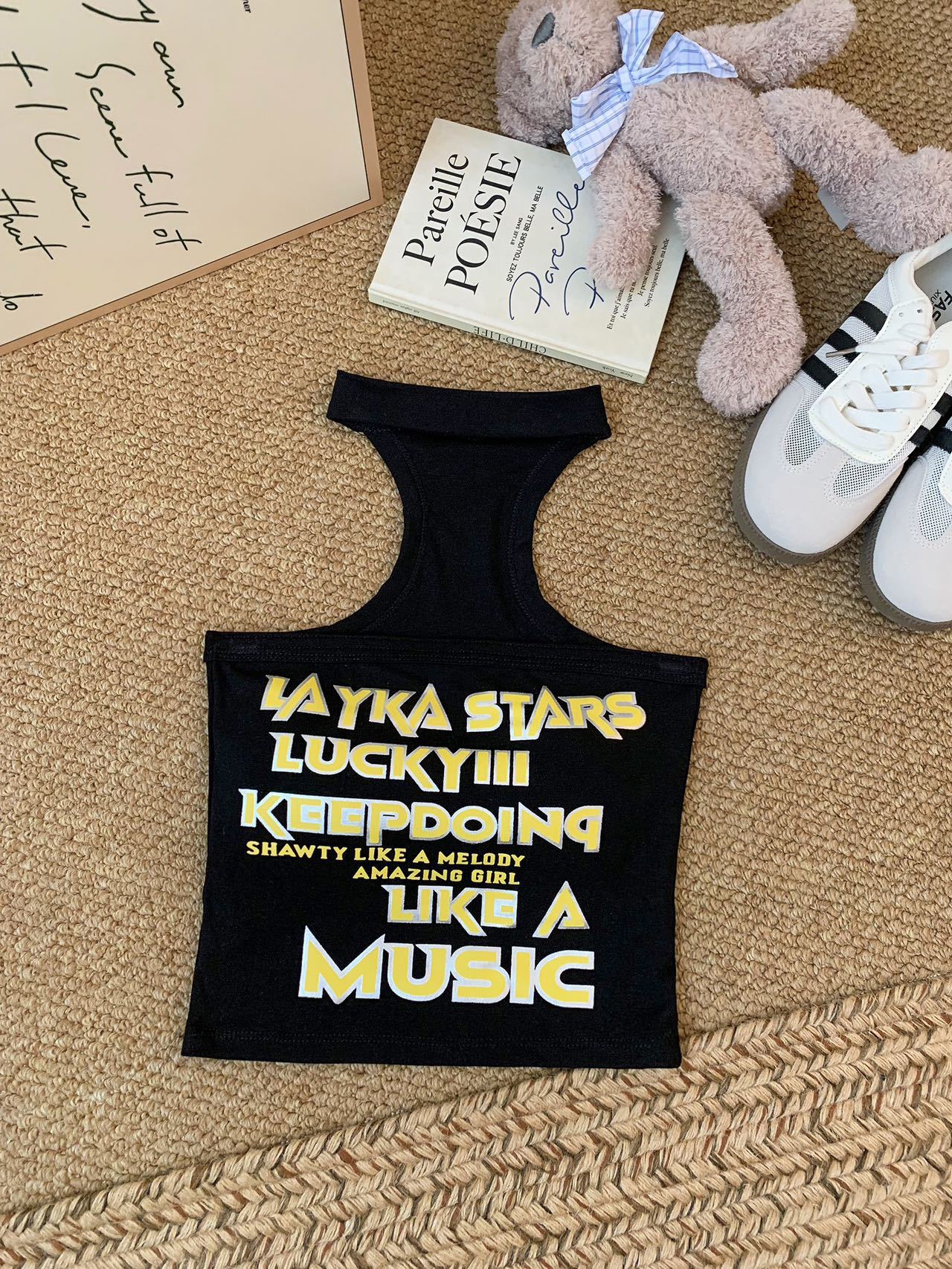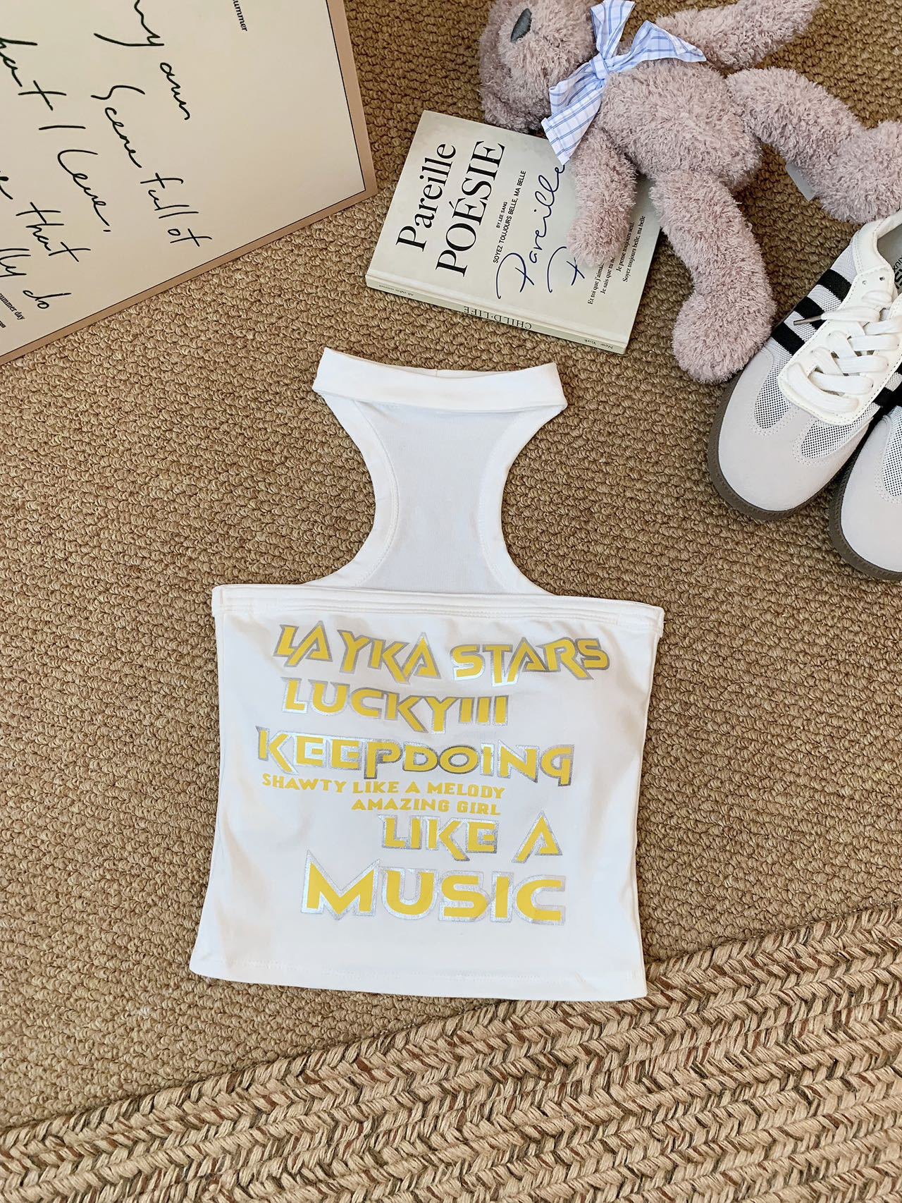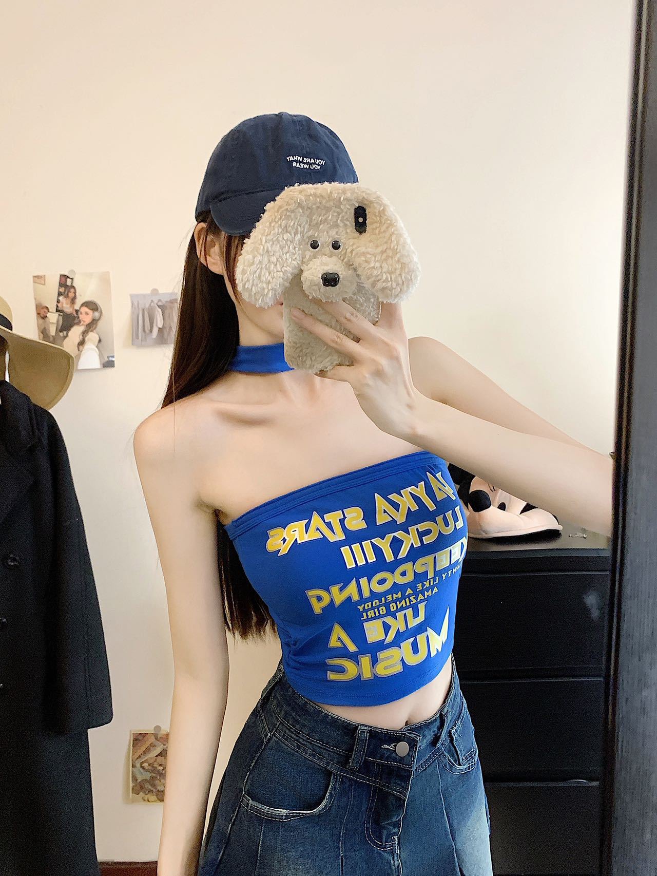 1932 레트로 레터 프린트 튜브탑 캐미솔 아우터웨어 허리와 등이 아름다운 핫걸 민소매 홀터넥 탑