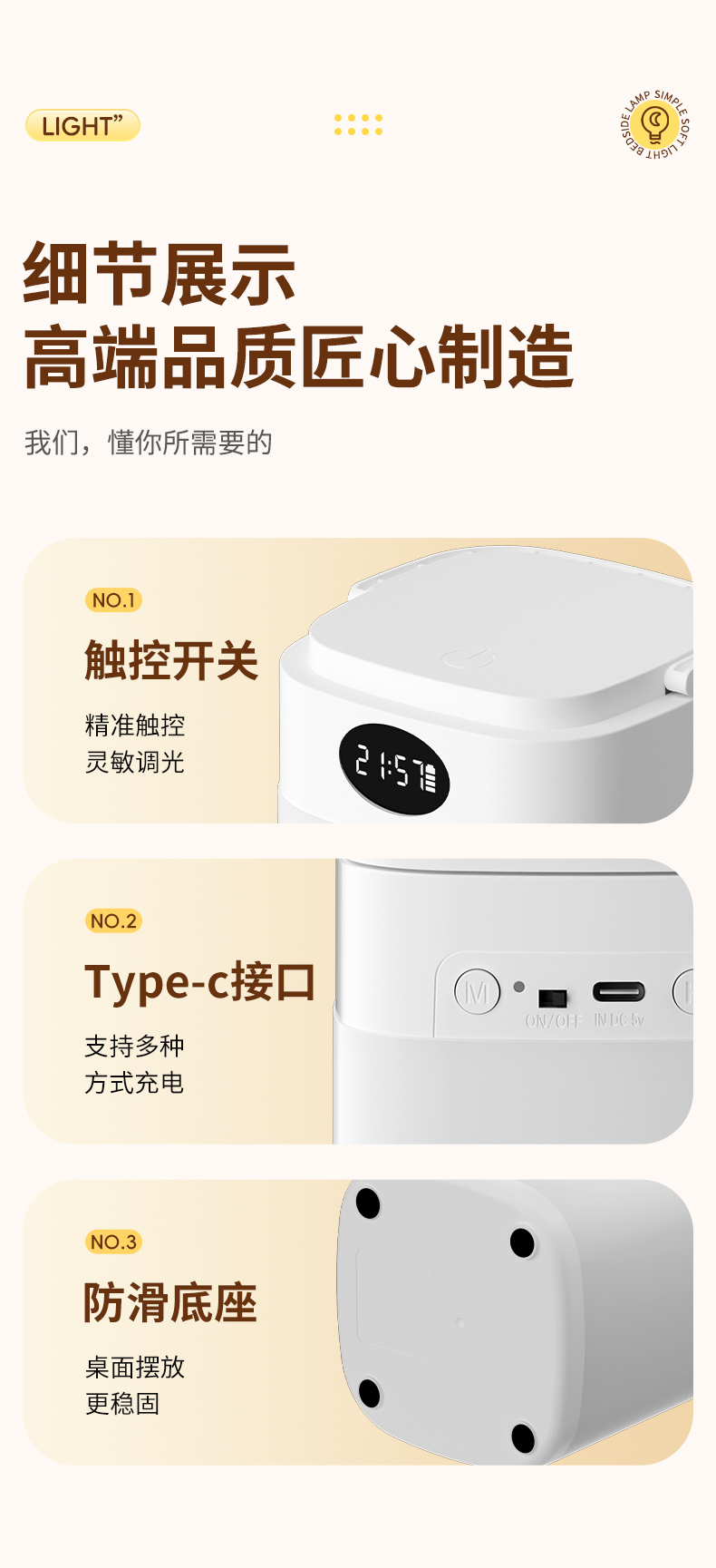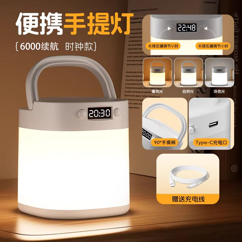 • 시간 표시 - 실외 휴대용 램프 [1회 충전으로 45일 지속] 3단계 색온도 서라운드 조명