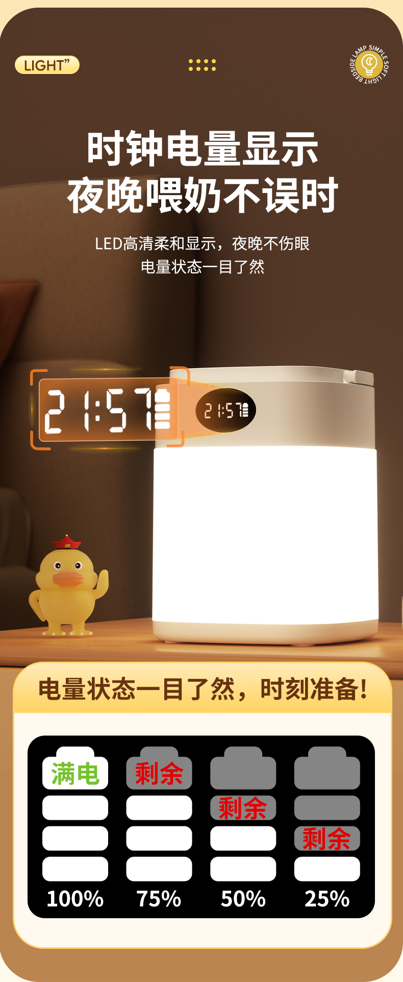 • 시간 표시 - 실외 휴대용 램프 [1회 충전으로 60일 지속] 3단계 색온도 서라운드 조명