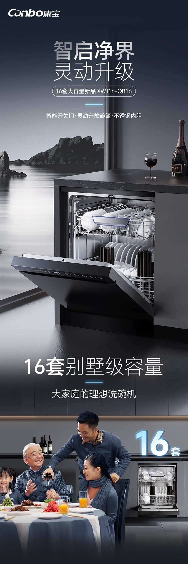 Kangbao 16 세트 돌고래 내장 식기 세척기 소형 가정용 식기 세척 및 소독 올인원 기계 전체 304 스테인레스 스틸
