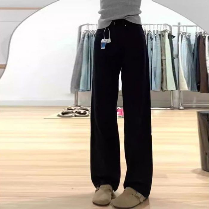 여성을위한 느슨한 미국 흰색 와이드 레그 바지 2025 여름 새로운 대형 질감 높은 허리 스트레이트 청바지 바지스토어 가기