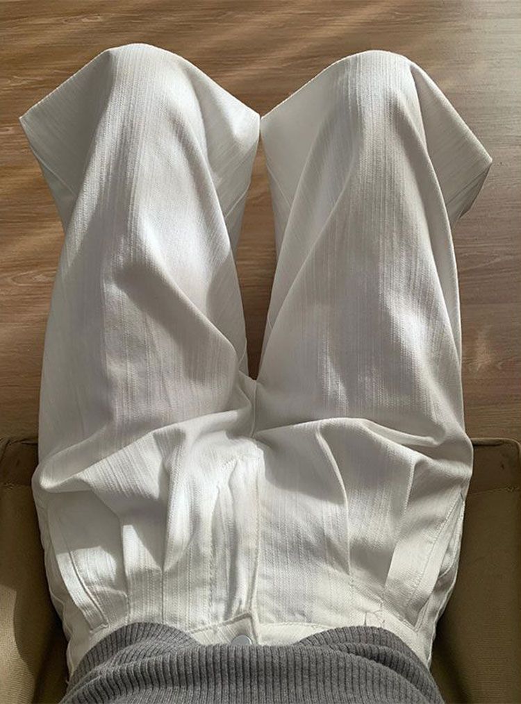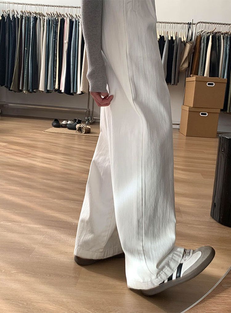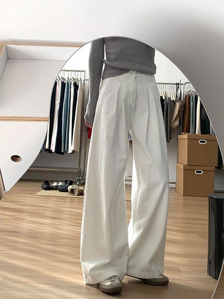 여성을위한 느슨한 미국 흰색 와이드 레그 바지 2025 여름 새로운 대형 질감 높은 허리 스트레이트 청바지 바지