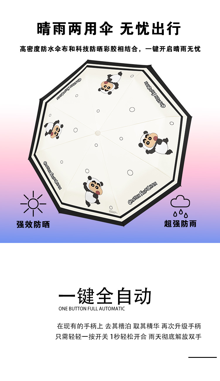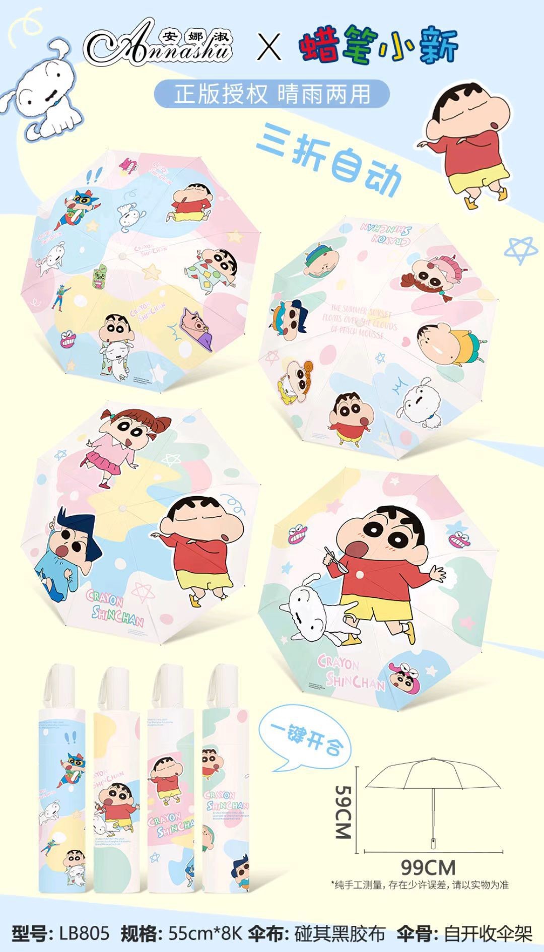 정품 크레용 신짱 파라솔 비닐 태양 우산 태양 보호 UV 보호 비 또는 빛 70% off 자동 우산