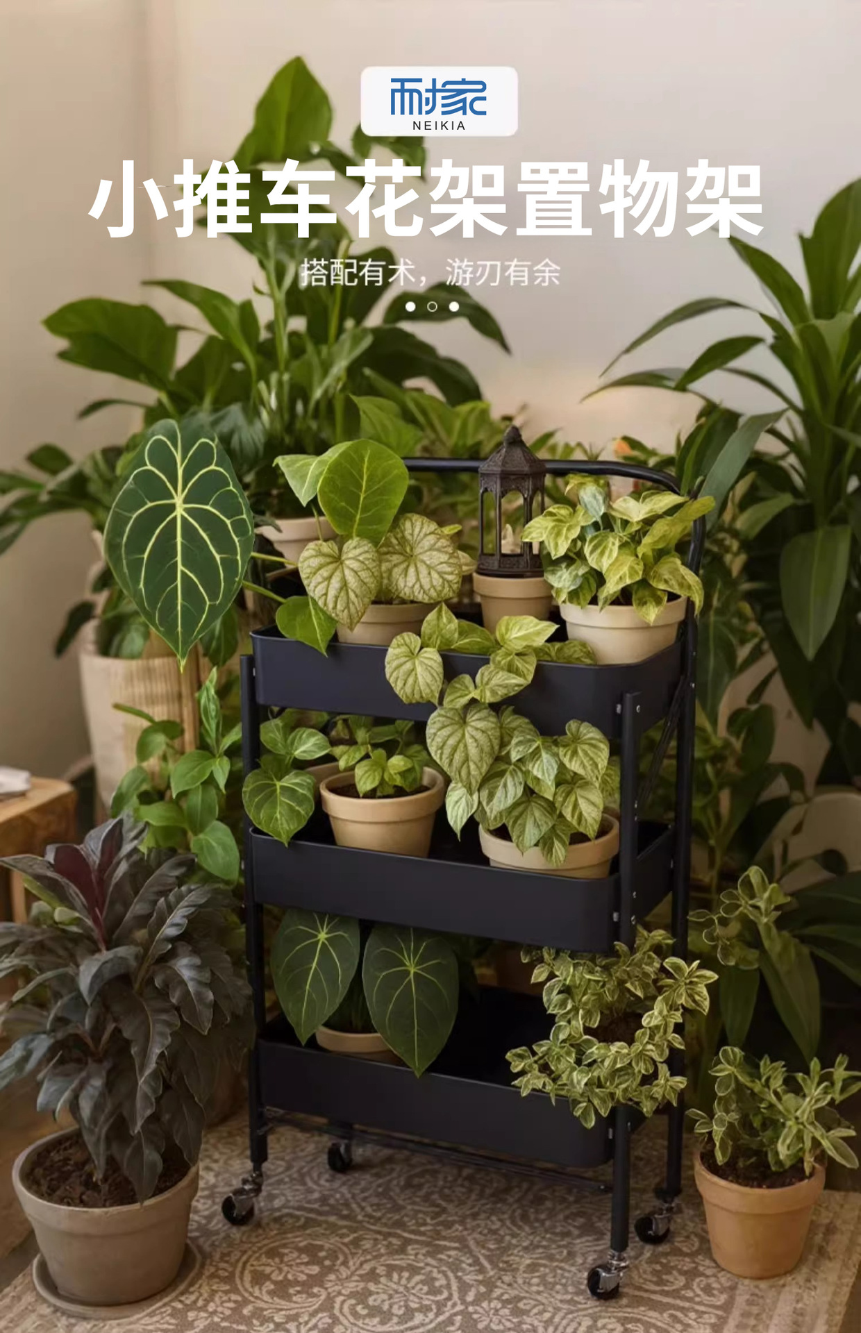 베고니아 꽃 선반 이동식 트롤리 식물 선반 거실 발코니 바닥 스탠딩 스토리지 랙 화분 랙스토어 가기