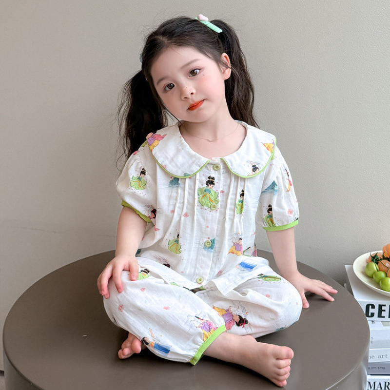 여자 홈웨어 세트 여름 2025 새로운 어린이 스타일 반팔 잠옷 투피스 세트 어린 소녀 캐주얼 트렌드스토어 가기