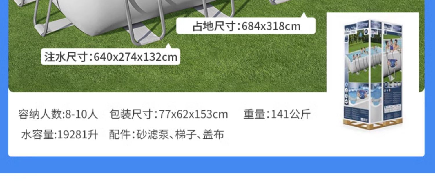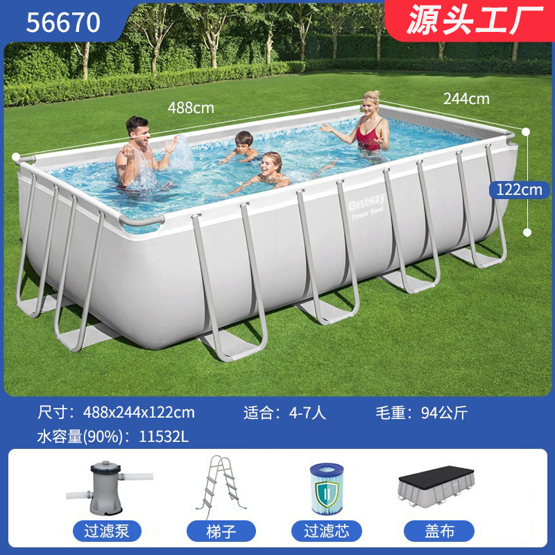 • 사양: 56465_549*274*122cm-bestway 회색 직사각형 브래킷 풀 중국 표준 58389 필터 펌프