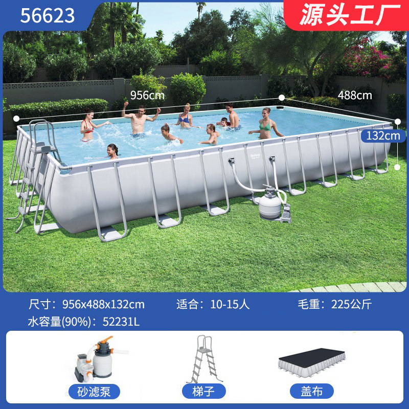 • 사양: 56623_956*488*132cm-bestway 회색 직사각형 브래킷 풀 유럽 표준 58499 모래 필터