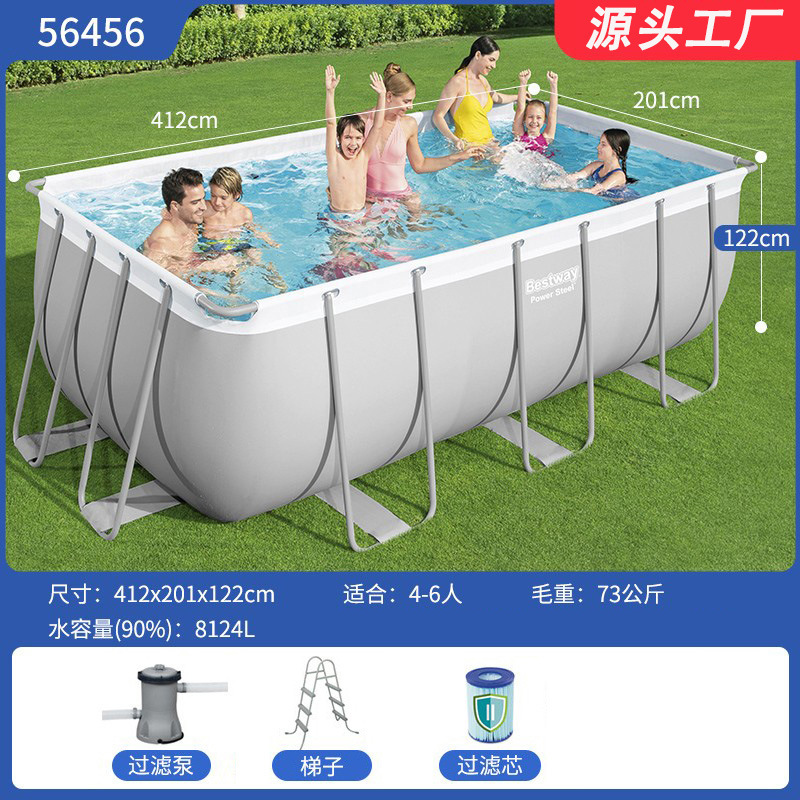 • 사양: 56441_404*201*100cm-bestway 회색 직사각형 브래킷 풀 중국 표준 58383 필터 펌프