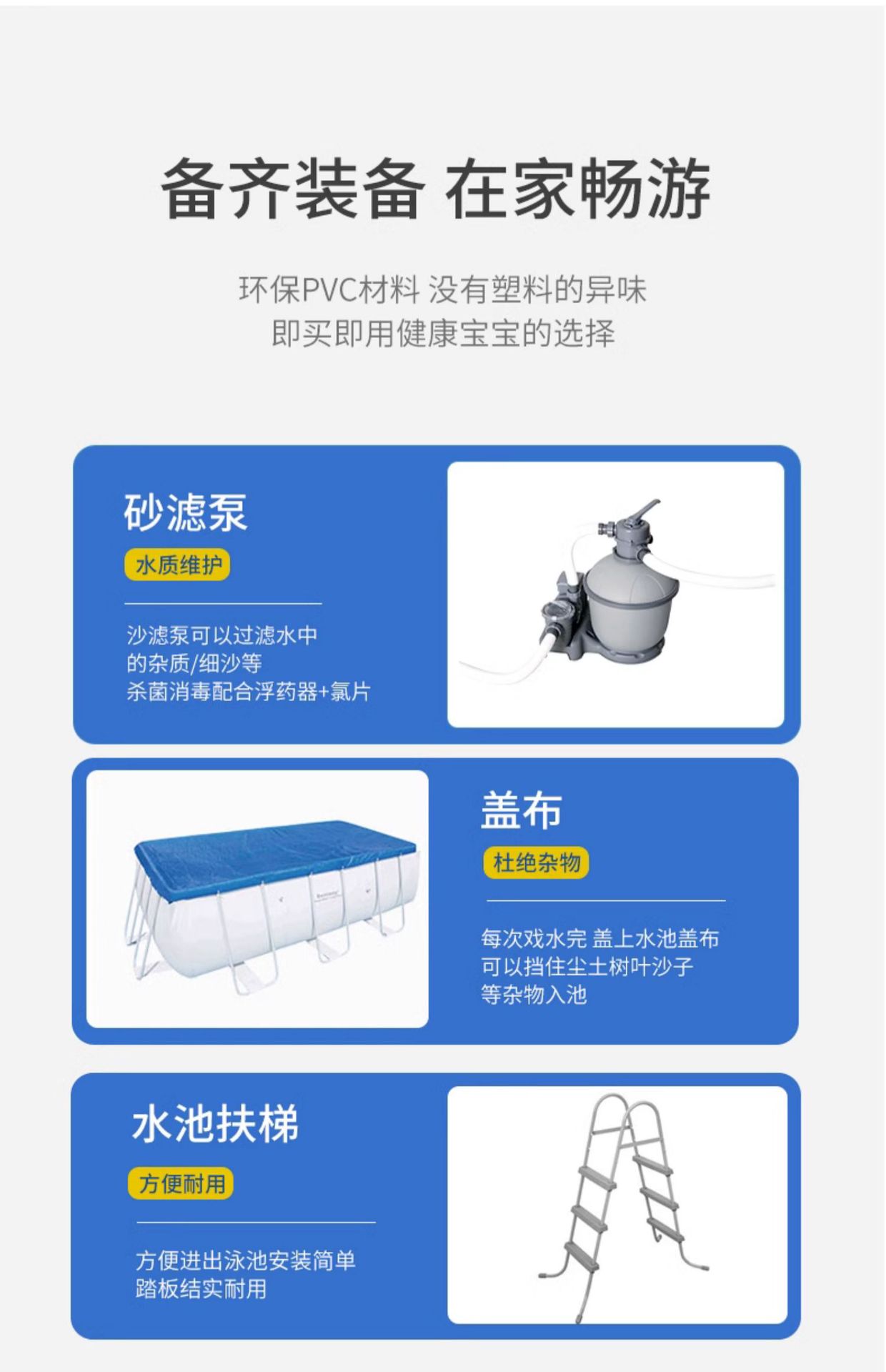 • 사양: 56629_282*196*84cm-bestway 회색 직사각형 브래킷 풀 유럽 표준 58381 필터 펌프