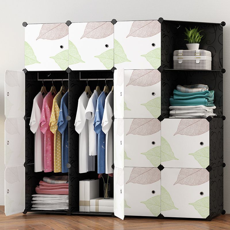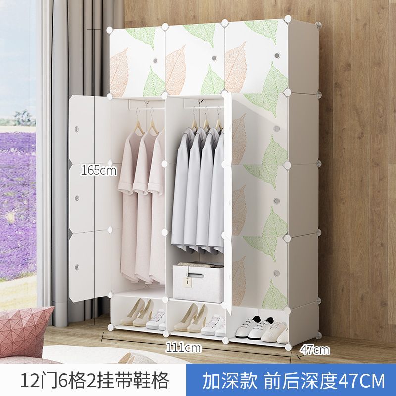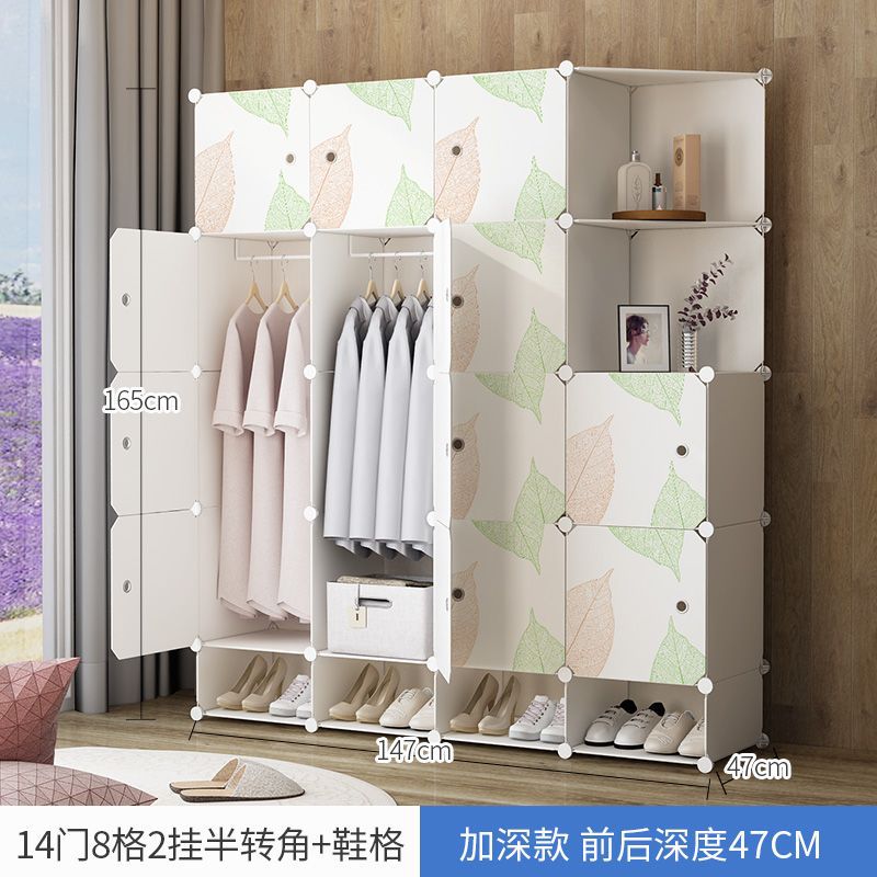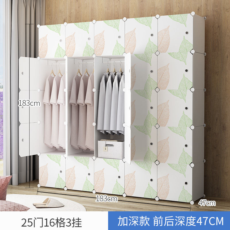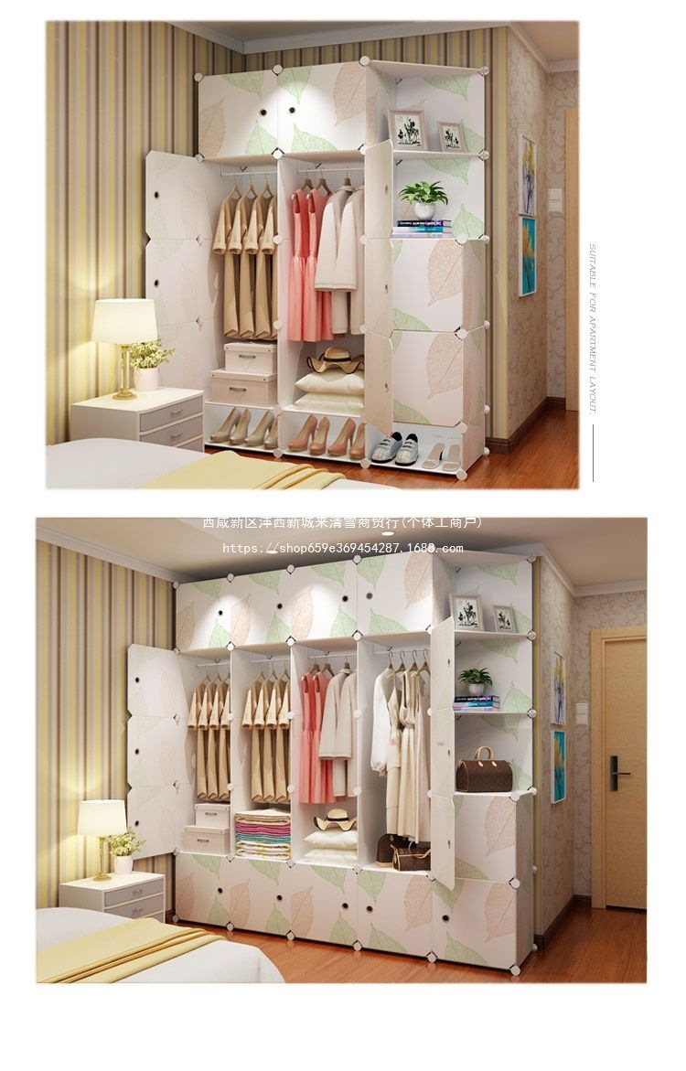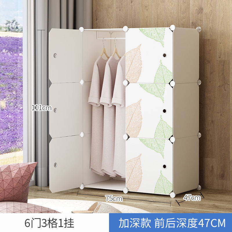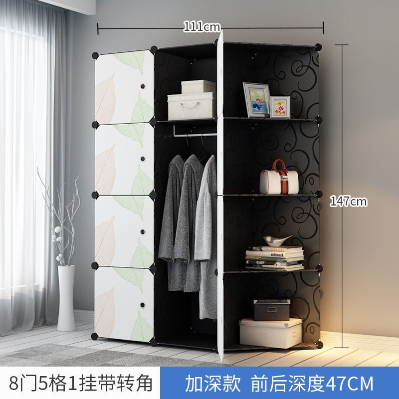 간단한 옷장 플라스틱 천 가정용 침실 보관함 단일 조립 옷장 모조 나뭇결 보관 캐비닛 보관함스토어 가기