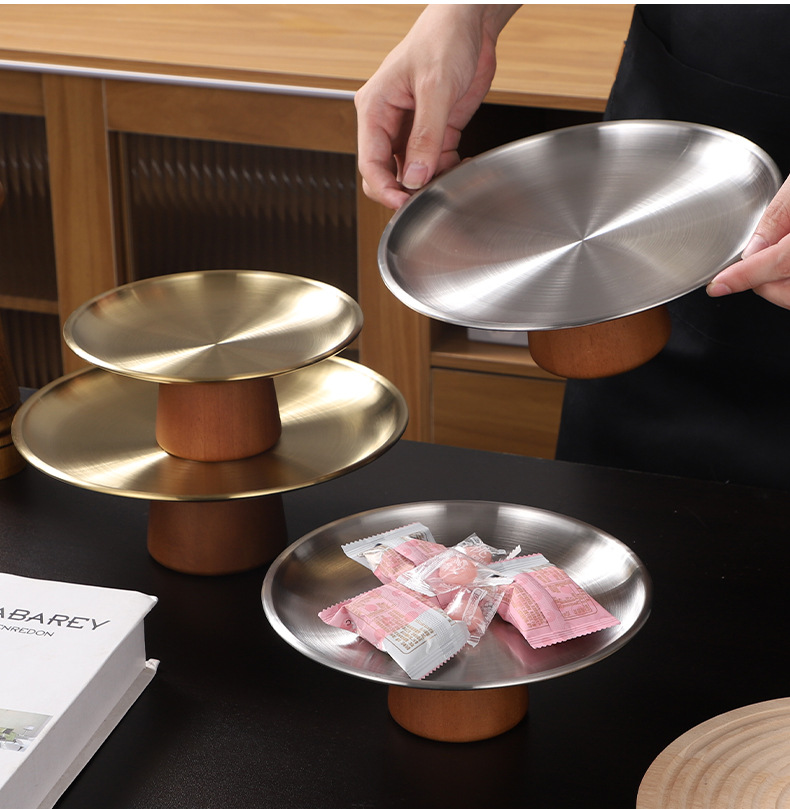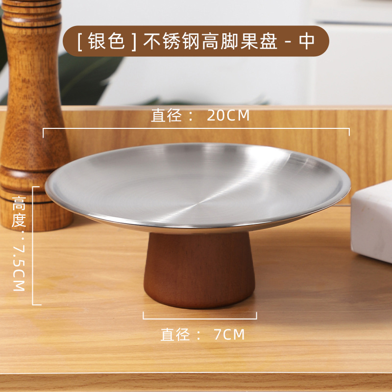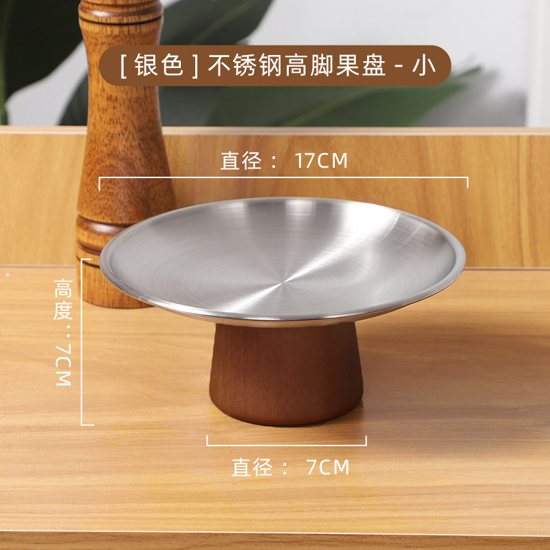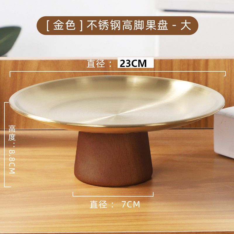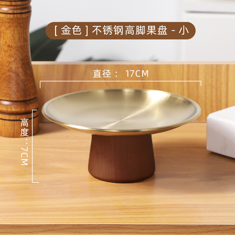 국경 간 과일 접시, 과일 접시, 디저트 접시, 단단한 나무 트레이, 높은 발, 가벼운 고급 스테인레스 스틸 사탕, 거실 및 차 집