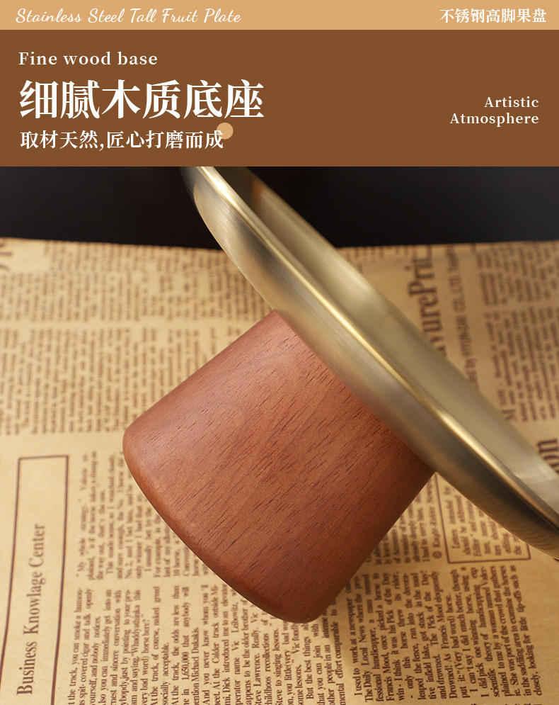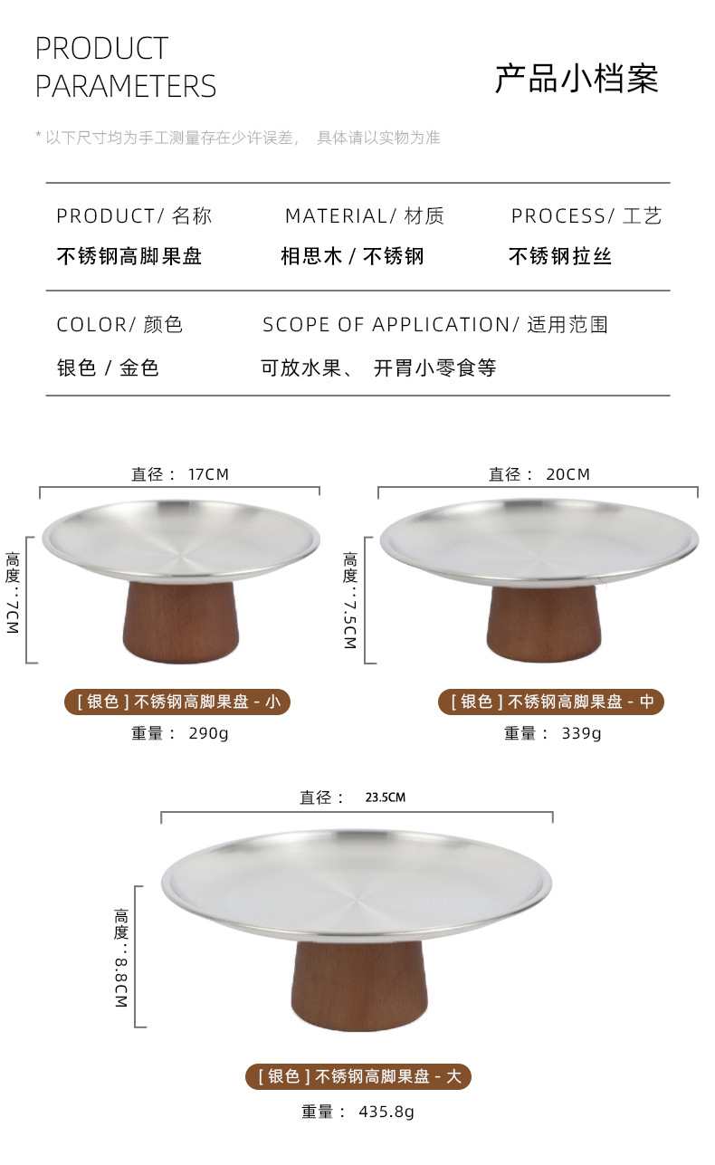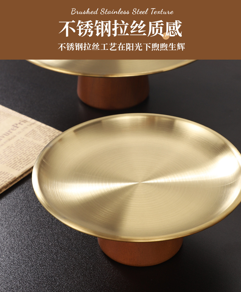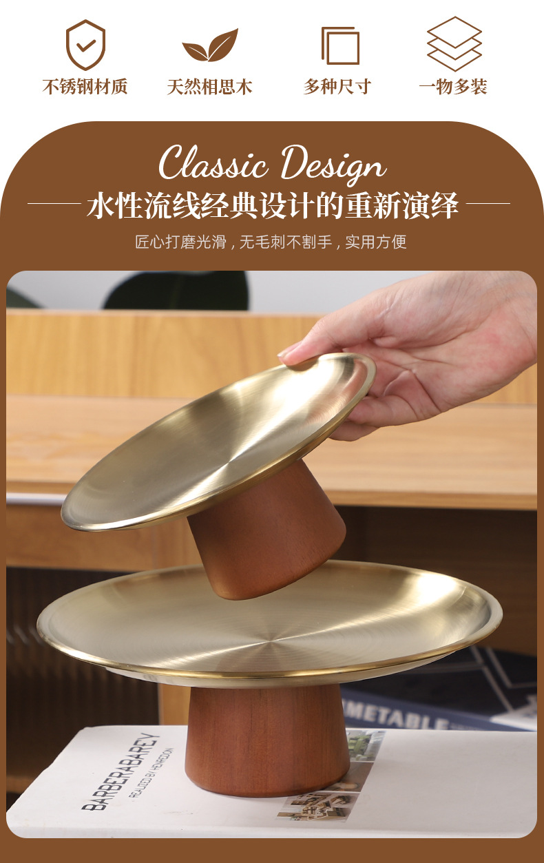 국경 간 과일 접시, 과일 접시, 디저트 접시, 단단한 나무 트레이, 높은 발, 가벼운 고급 스테인레스 스틸 사탕, 거실 및 차 집