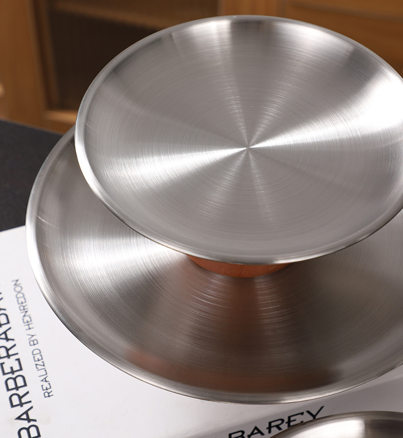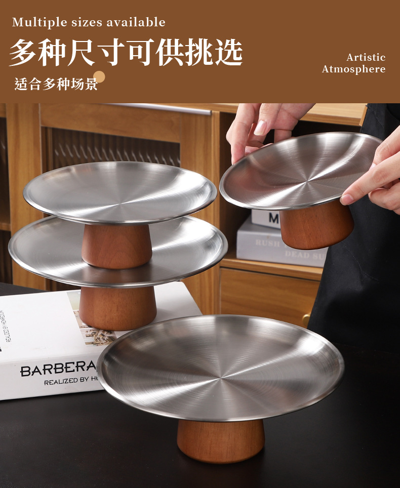 • 실버 - 아카시아 나무 키가 큰 스테인레스 스틸 플레이트 미디엄