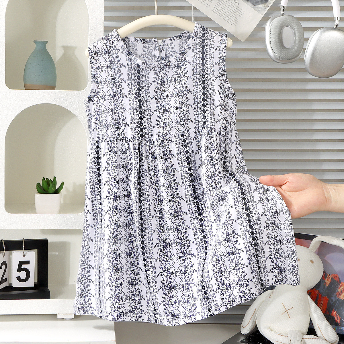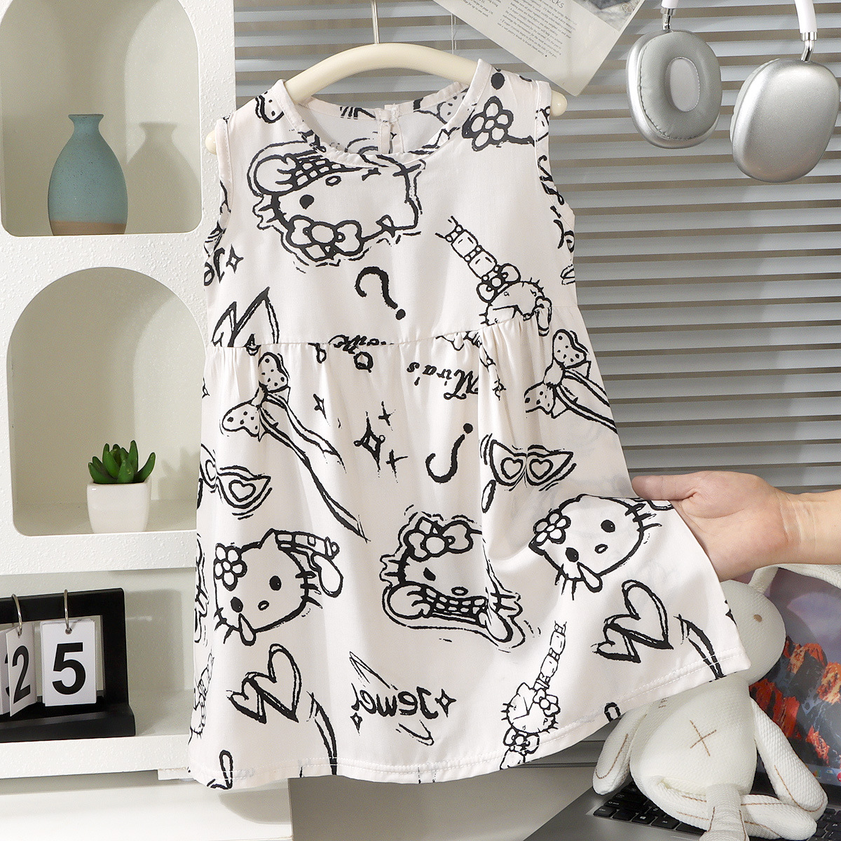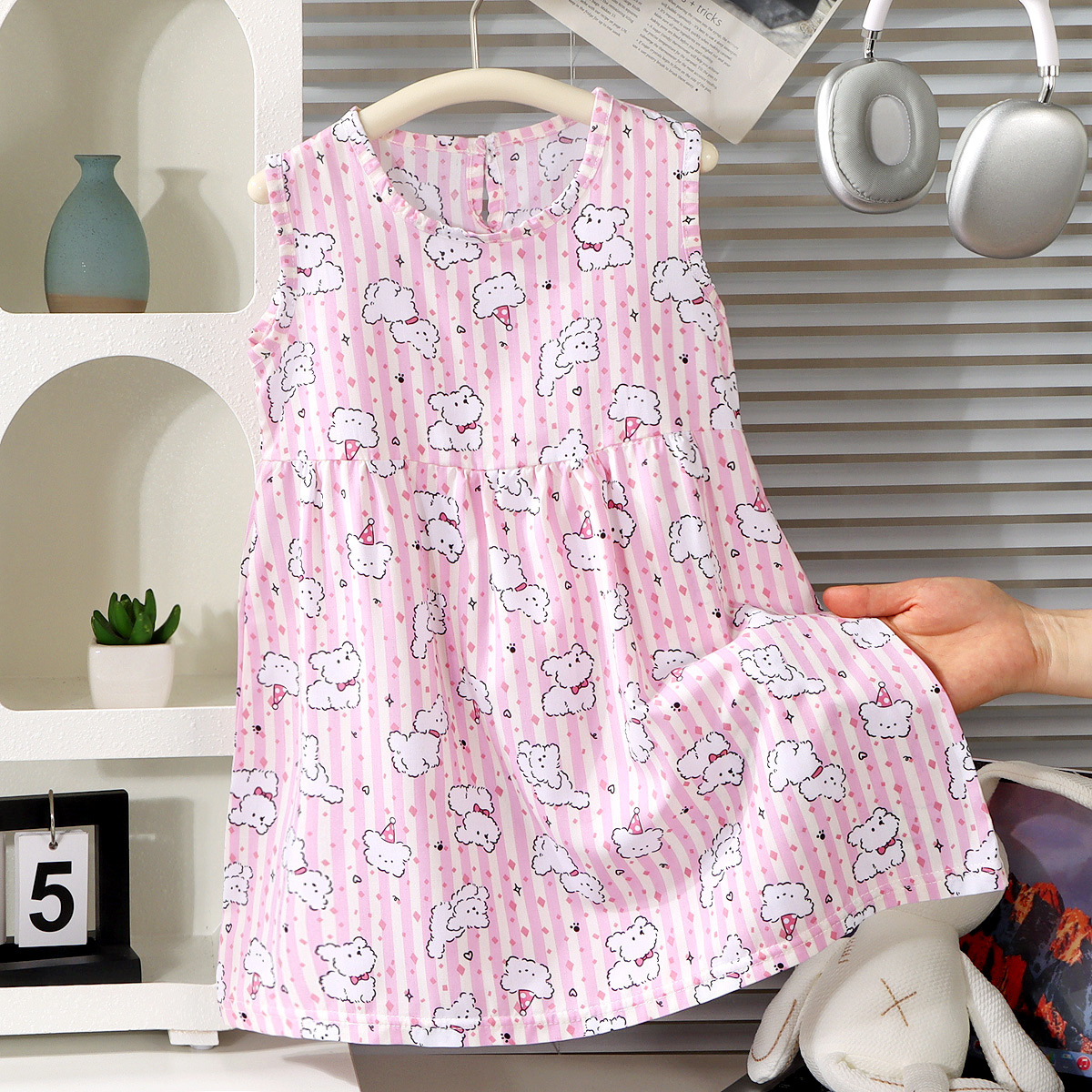 여름 어린이 공주 드레스 2025 리오셀 코튼 실크 중대형 어린이 소녀 드레스 한국 스타일 간단한 조끼 스커트