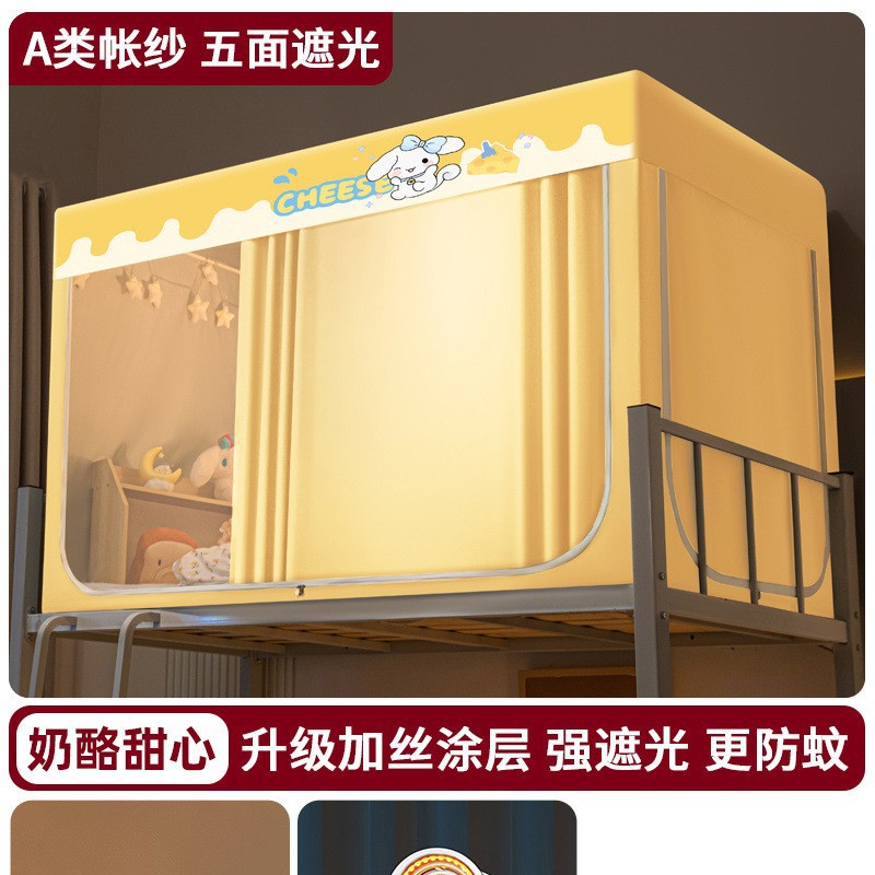 강력한 차광 학생 기숙사 모기장 침대 커튼 일체형 싱글 침대 이층 침대 설치가 필요 없는 풀 커버 침실 침대 커튼
