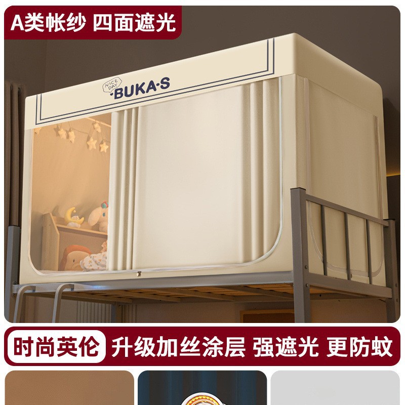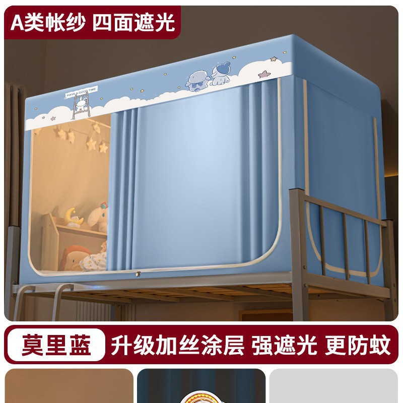 강력한 차광 학생 기숙사 모기장 침대 커튼 일체형 싱글 침대 이층 침대 설치가 필요 없는 풀 커버 침실 침대 커튼스토어 가기