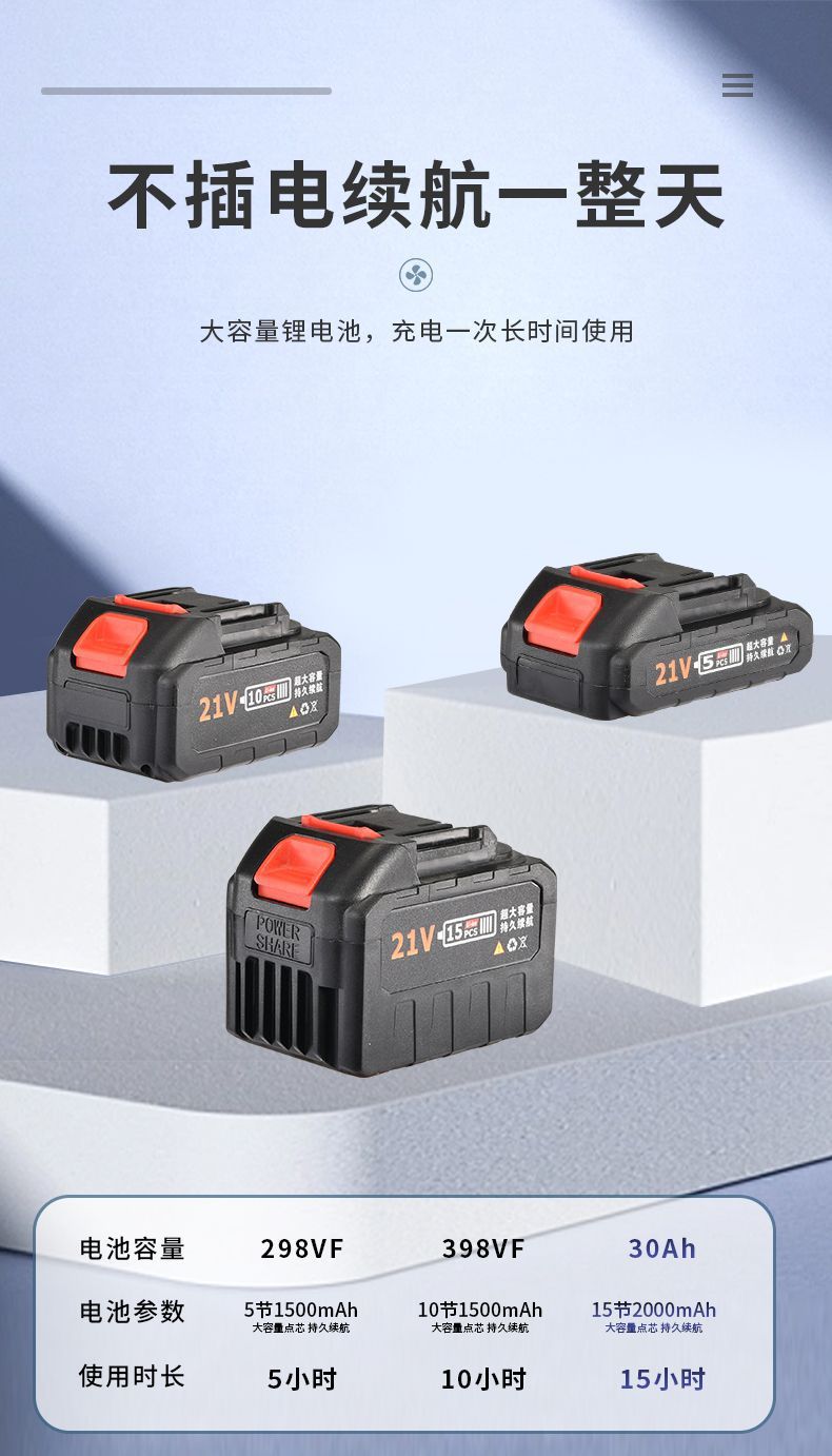 • 팬 + 리튬 배터리 18000 용량 2 + 충전기