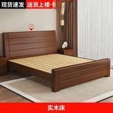 새로운 중국 스타일의 단단한 나무 침대 1.8m 더블 침대 마스터 침실 2025 새로운 임대 집 호두 색상 1.5m 싱글 침대