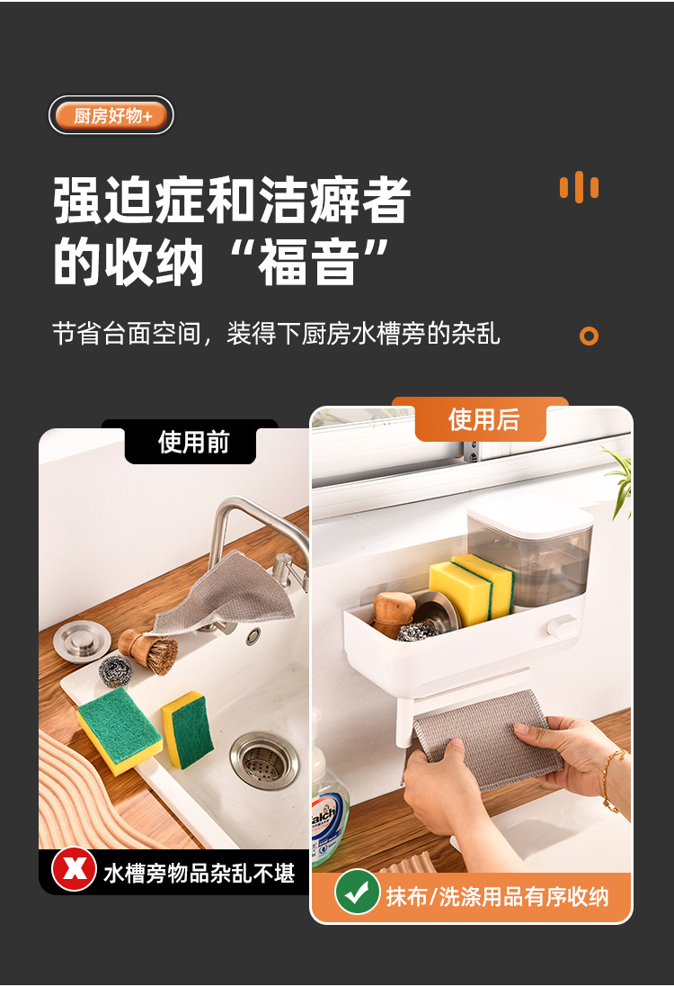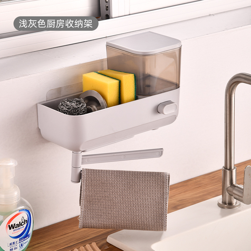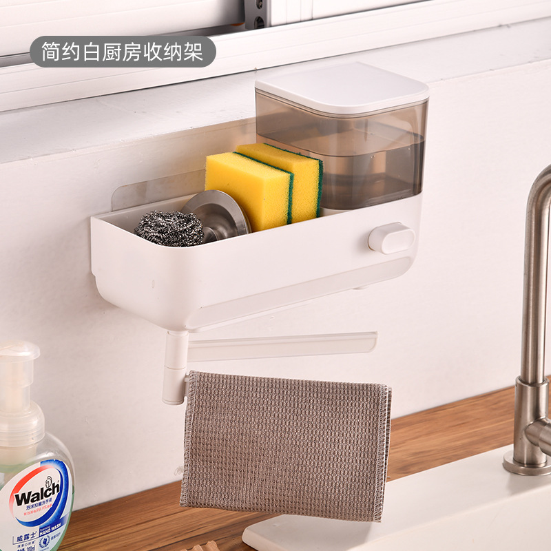 주방 수납 선반 싱크대 주방 세제 프레스 벽걸이형 비누 디스펜서 스펀지 배수구 수납 선반 펀치 없음스토어 가기
