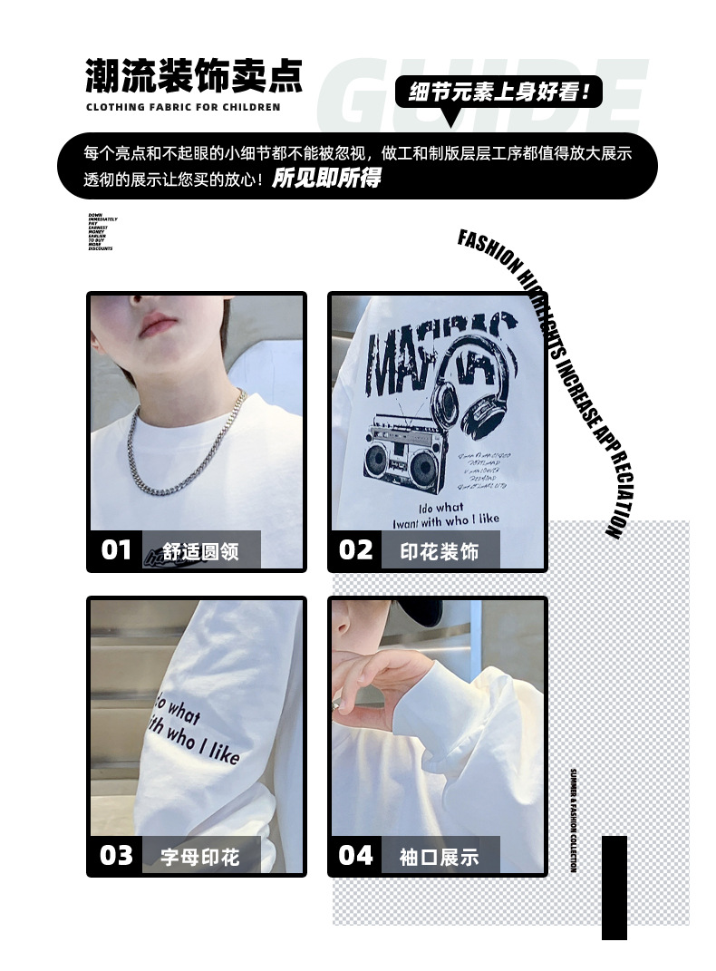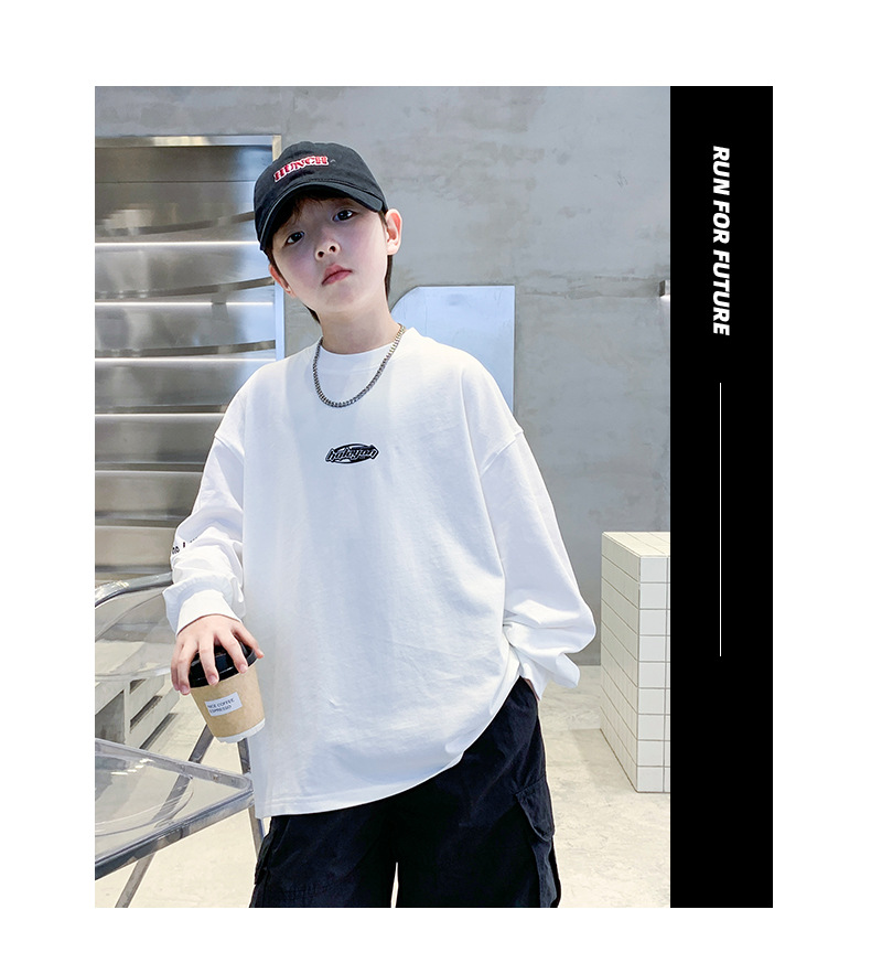 소년 흰색 긴팔 티셔츠 2025 새로운 어린이 바닥 셔츠 순면 중대형 어린이 이너 탑 봄과 가을 스트리트웨어스토어 가기