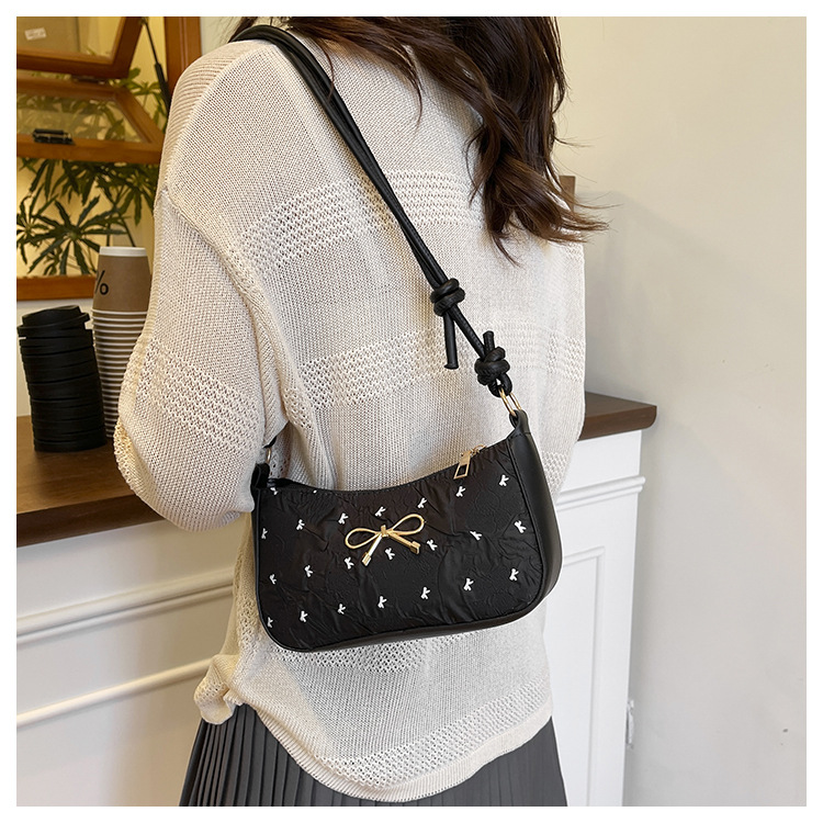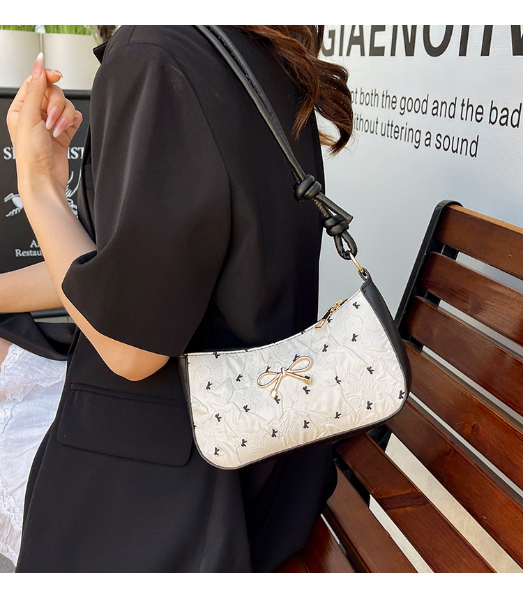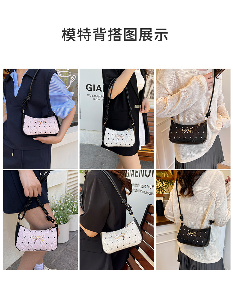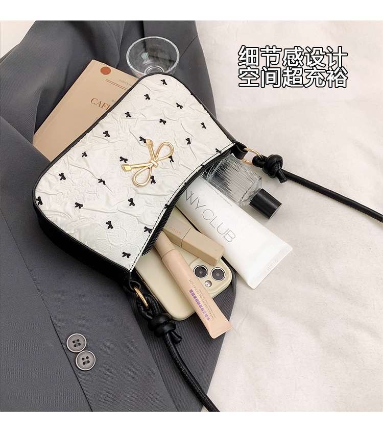 2025 새로운 한국어 버전 틈새 보우 백 여성용 싱글 숄더 크로스 바디 백 폴카 도트 휴대용 소형 사각형 가방스토어 가기