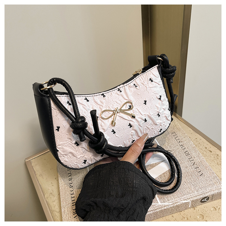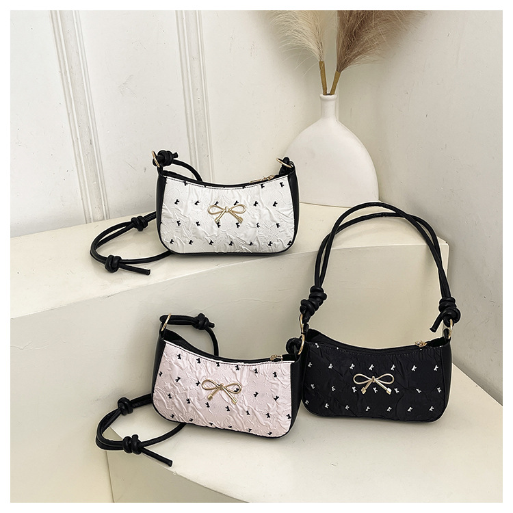 2025 새로운 한국어 버전 틈새 보우 백 여성용 싱글 숄더 크로스 바디 백 폴카 도트 휴대용 소형 사각형 가방