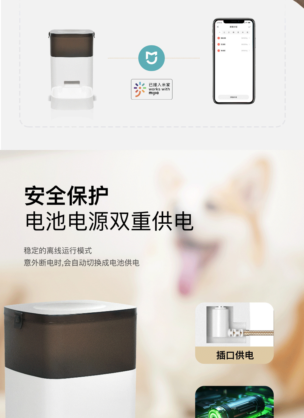 고양이를 위한 자동 급식기, 스마트 애완동물, 고양이 사료 및 개 사료의 정량적이고 정량적인 보존, Mijia 원격 제어 급식기