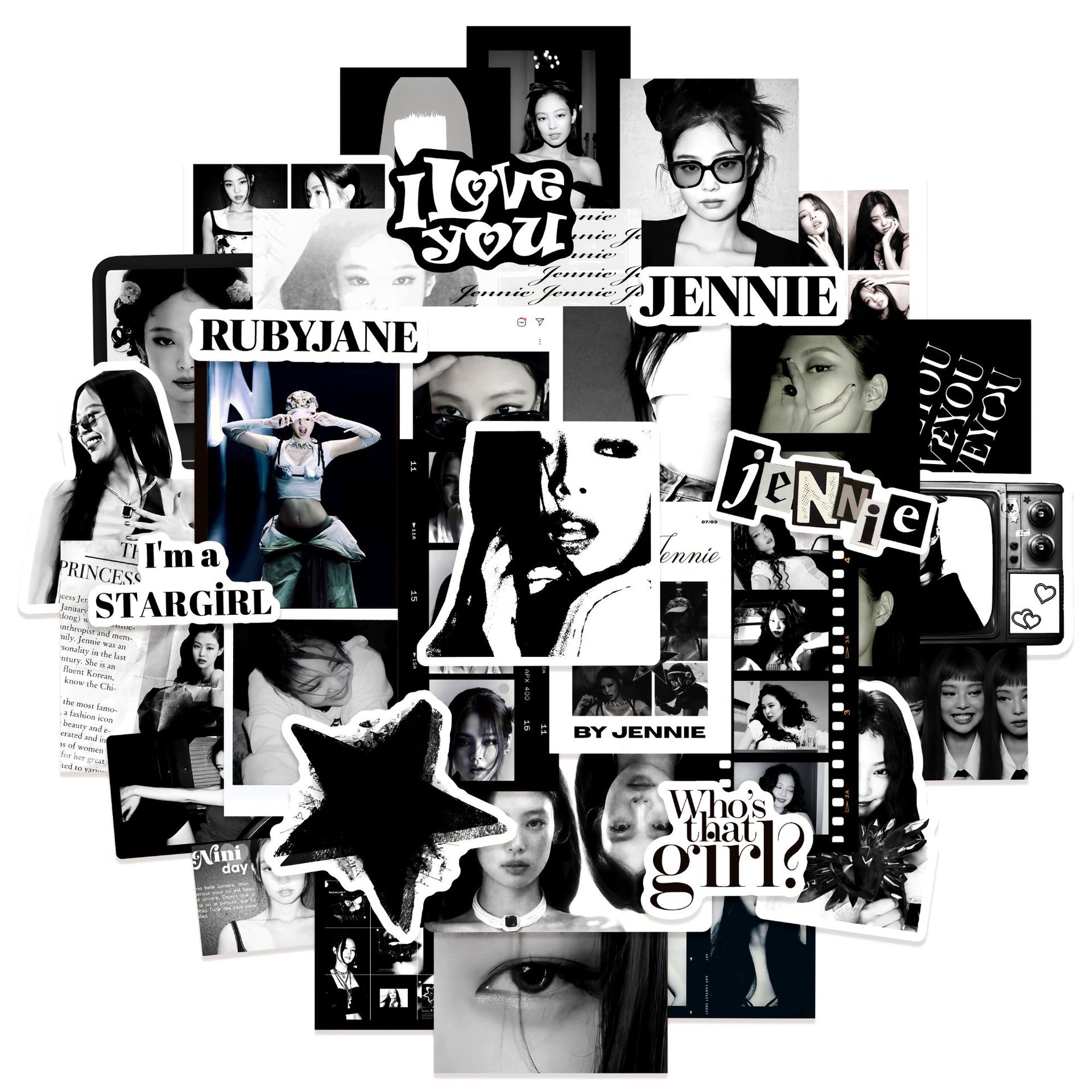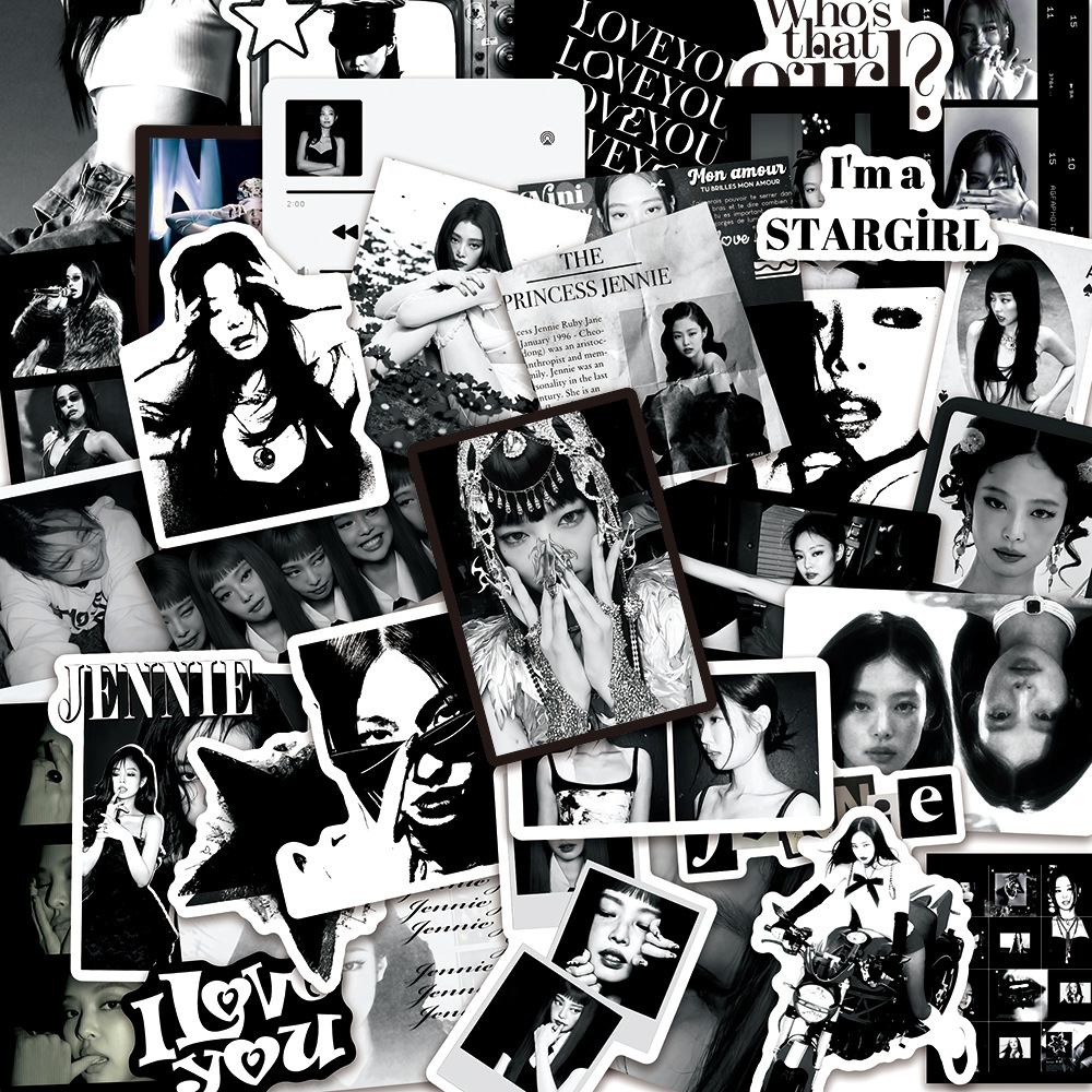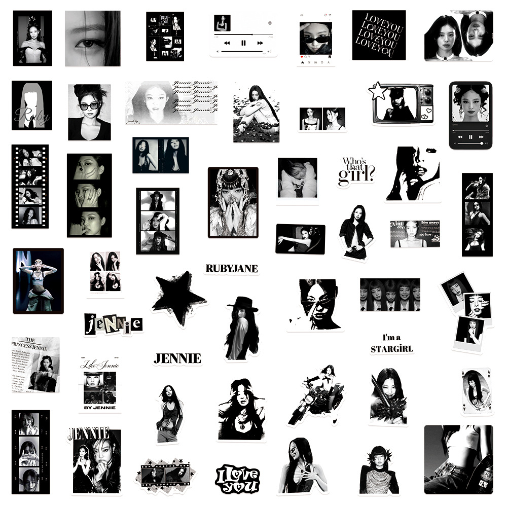 제니 흑백 싱글 스티커 50개 블랙핑크 DIY 방수 워터컵 장식 주변 스티커