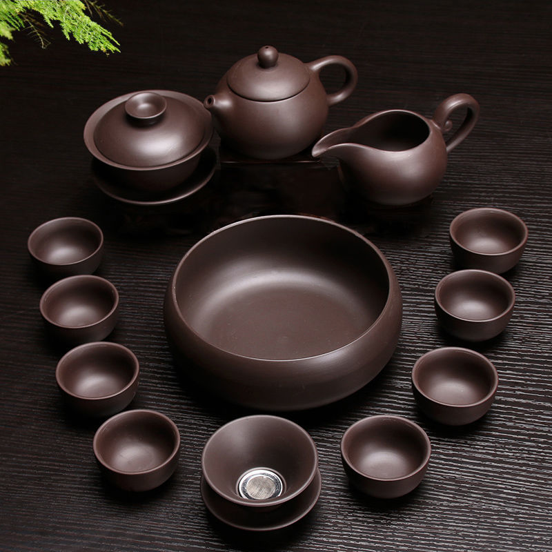 가정용 거실을 위한 원시 보석 보라색 모래 쿵푸 차 세트 세라믹 주전자와 찻잔 간단한 사무실