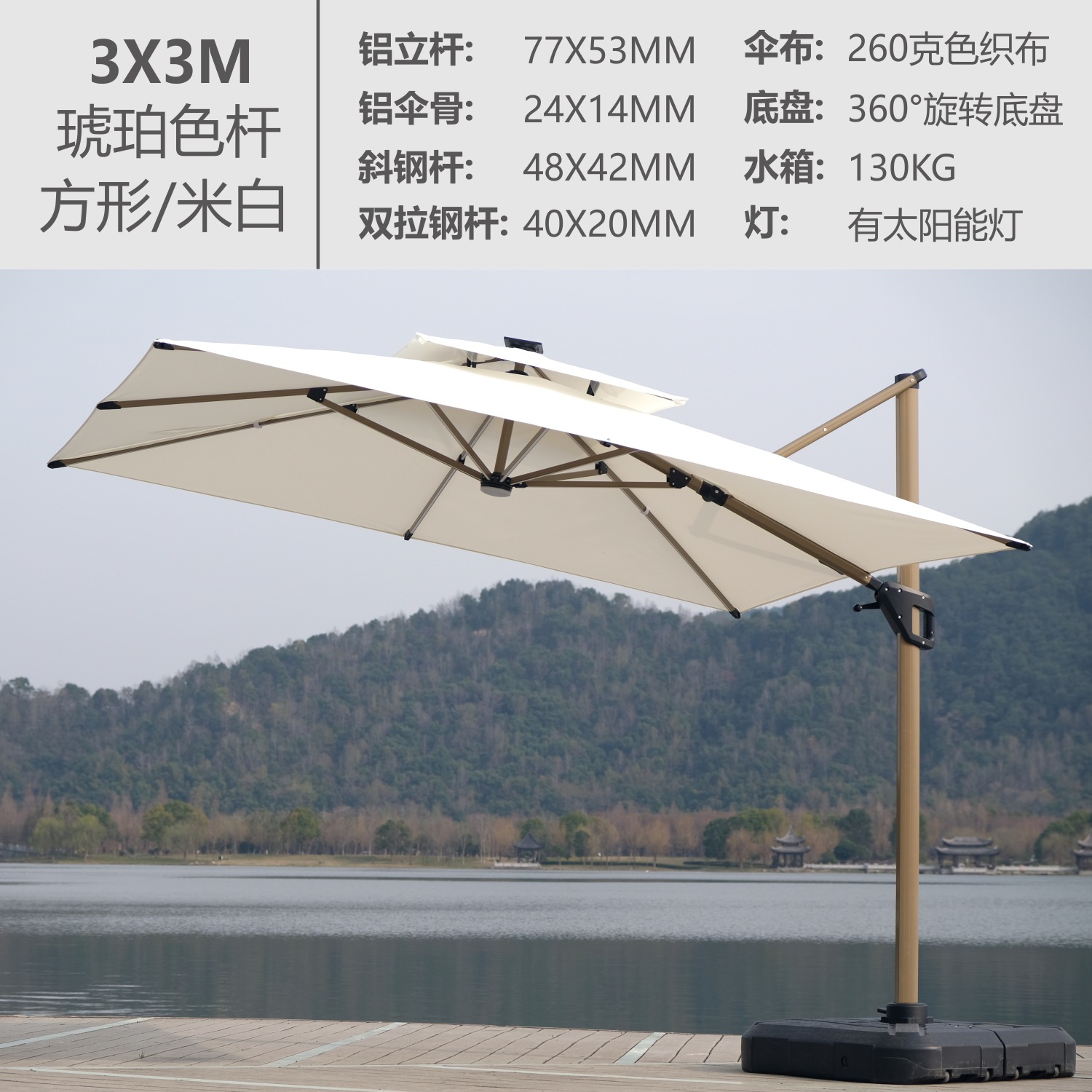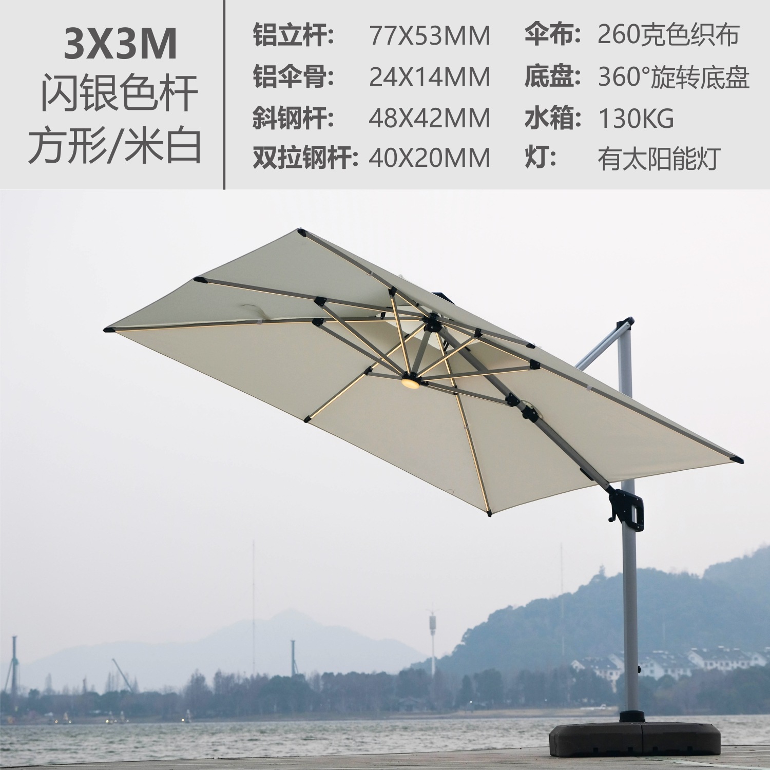 • 미색-3X3M-태양광램프-플래시 실버폴(130KG 물탱크 포함)