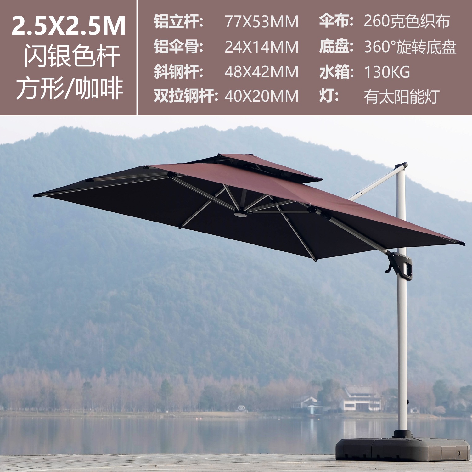 • 커피-2.5X2.5M-태양광램프-플래시실버폴(130KG 물탱크 포함)