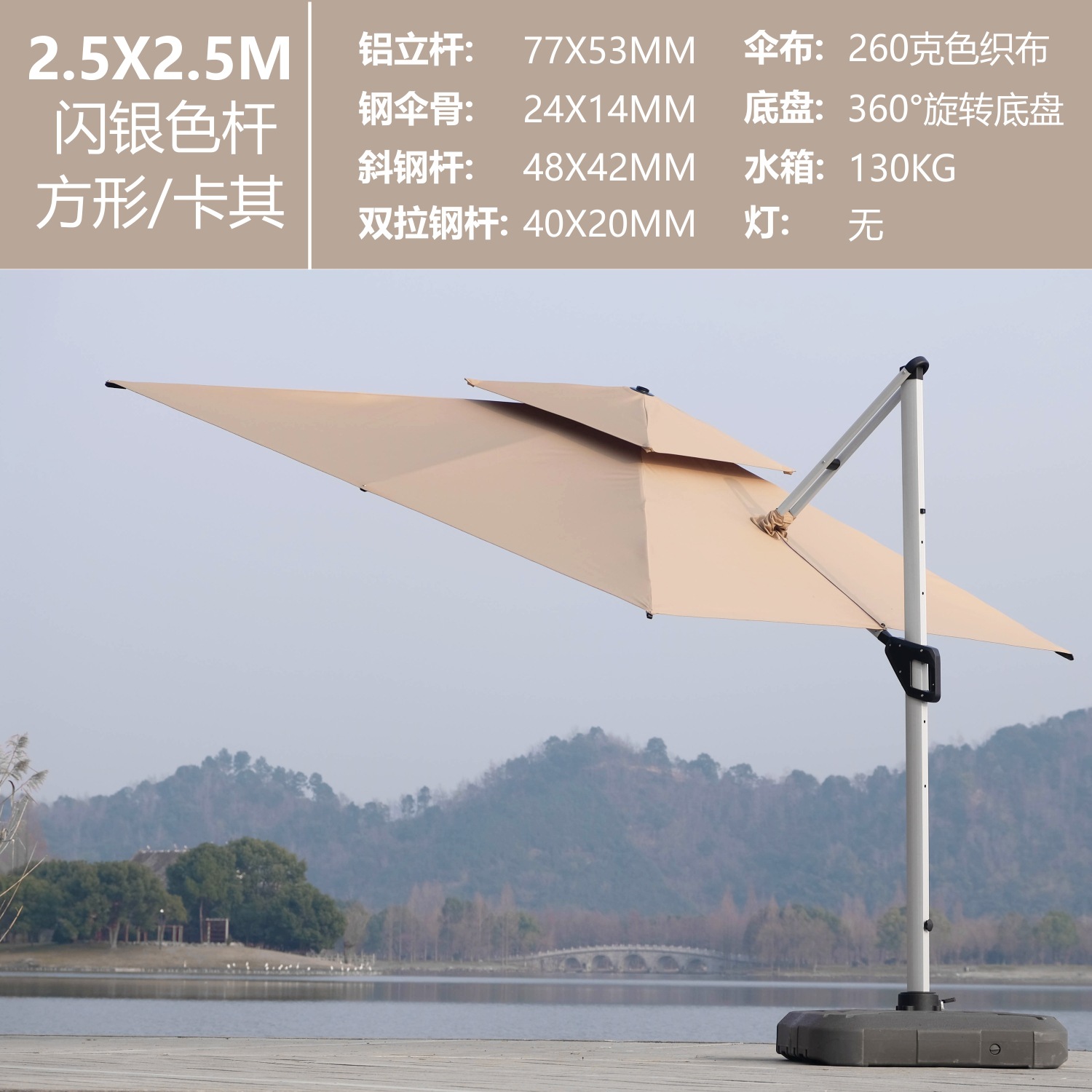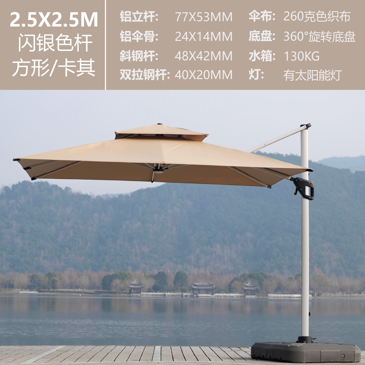 • 카키-2.5X2.5M-태양광램프-플래시실버폴(130KG 물탱크 포함)