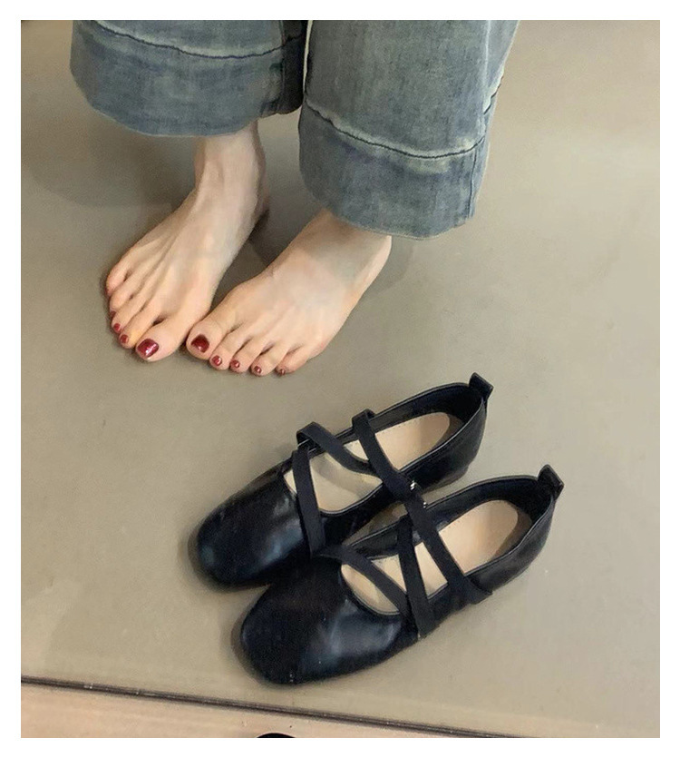 양가죽 버전 ~ 프렌치 크로스 스트랩 레드 메리제인 슈즈 플랫 슈즈 여성용 펌프스 이브닝 바람 요정 발레 슈즈