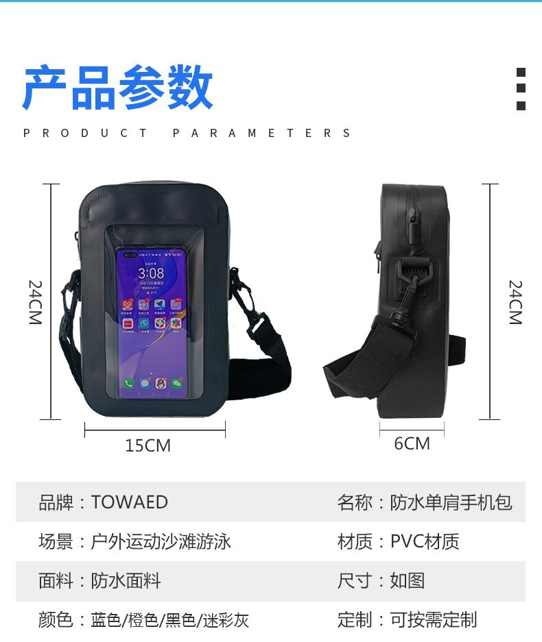 공장 직접 판매 야외 PVC 방수 휴대 전화 가방 사이클링 등산 어깨 가방 해변 수영 래프팅 방수 가방