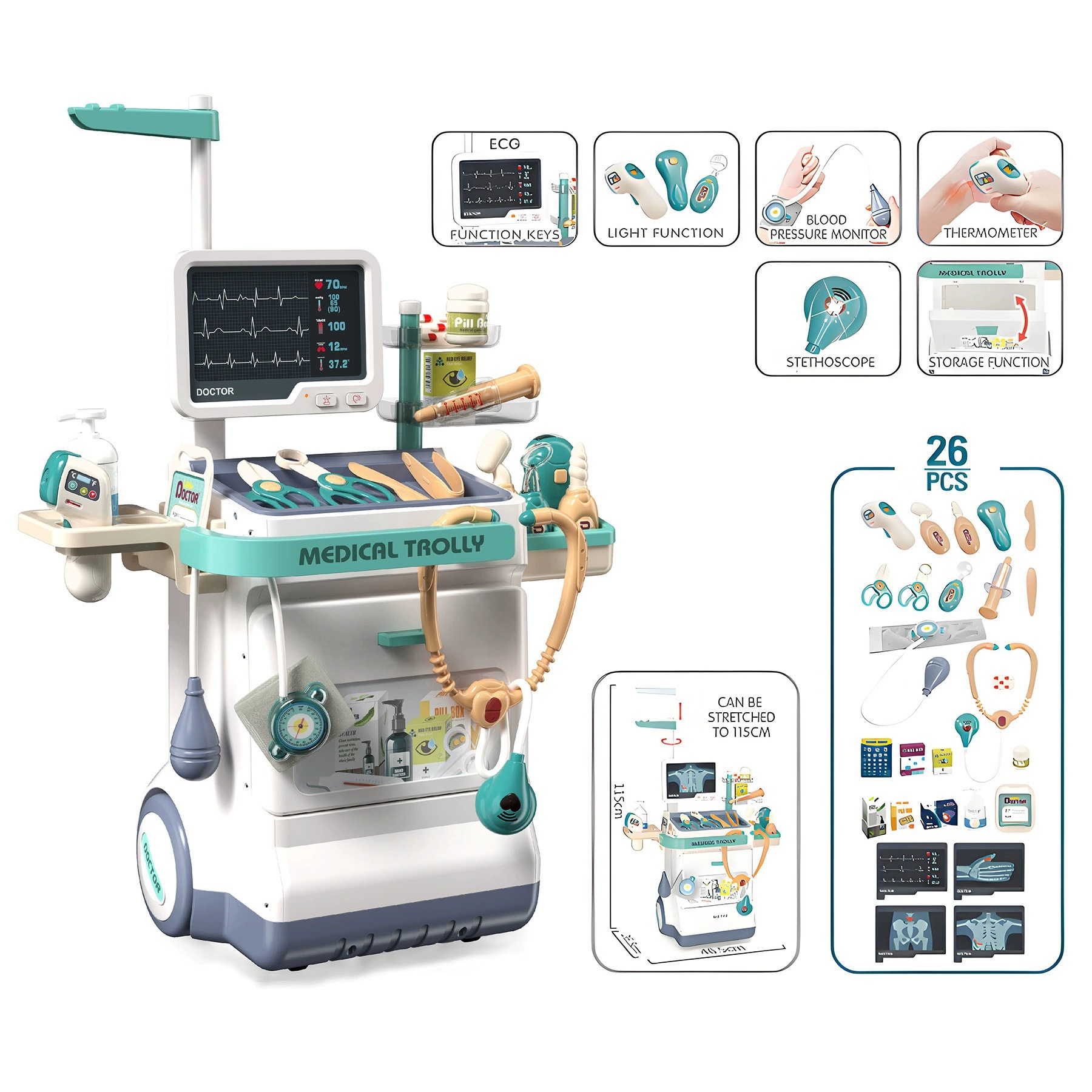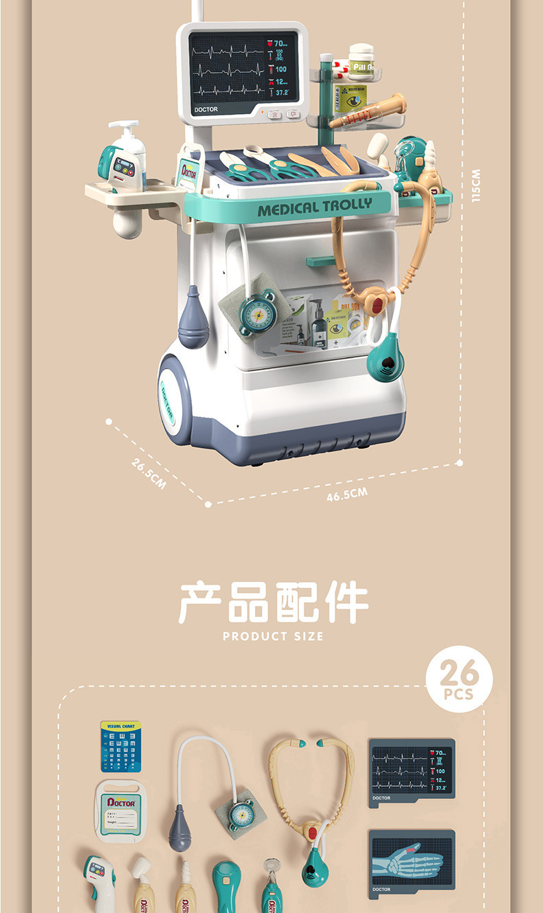 어린이 의사 작업대 카트 세트 여아 소꿉놀이 3~6세 소형 진료소 장난감 의료 교육용 장난감