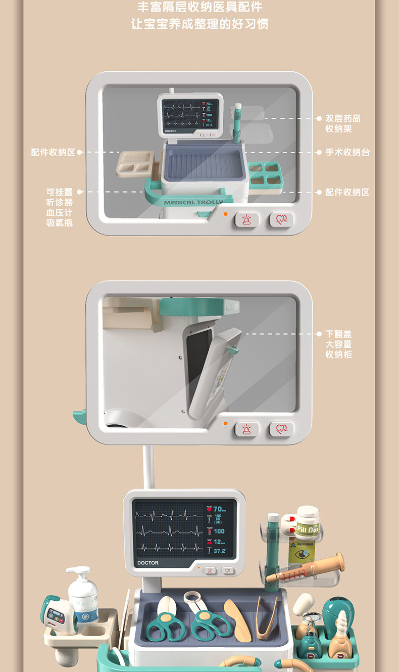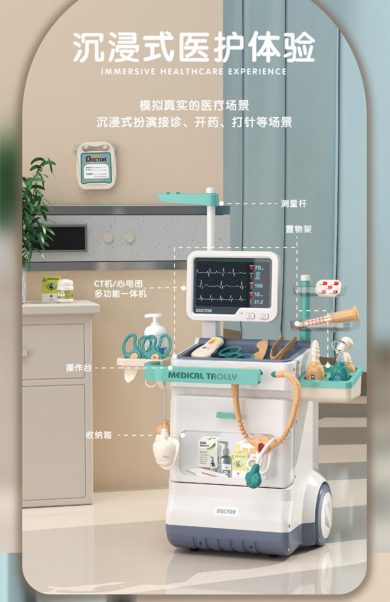 어린이 의사 작업대 카트 세트 여아 소꿉놀이 3~6세 소형 진료소 장난감 의료 교육용 장난감스토어 가기