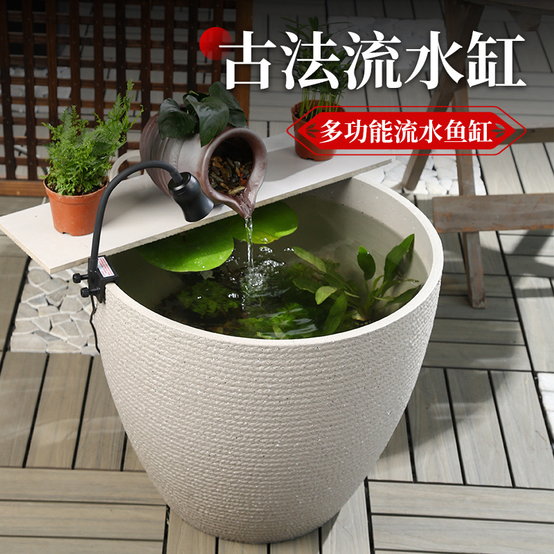 야외 안뜰 수조, 플라스틱 고대 수조, 수경 수조, 수련 연꽃 화분, 금붕어 거북이 생태 조경
