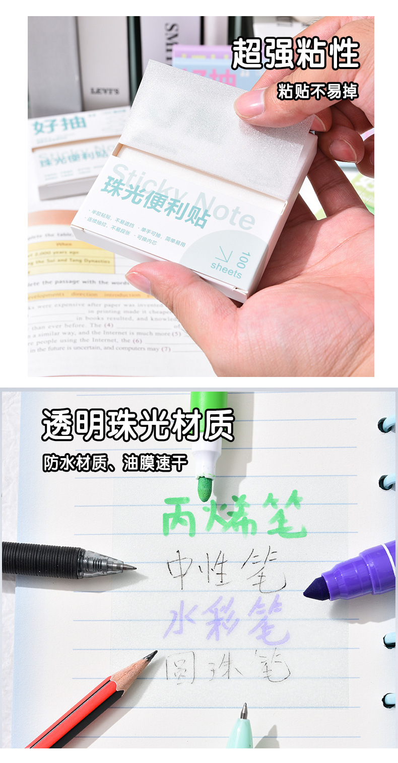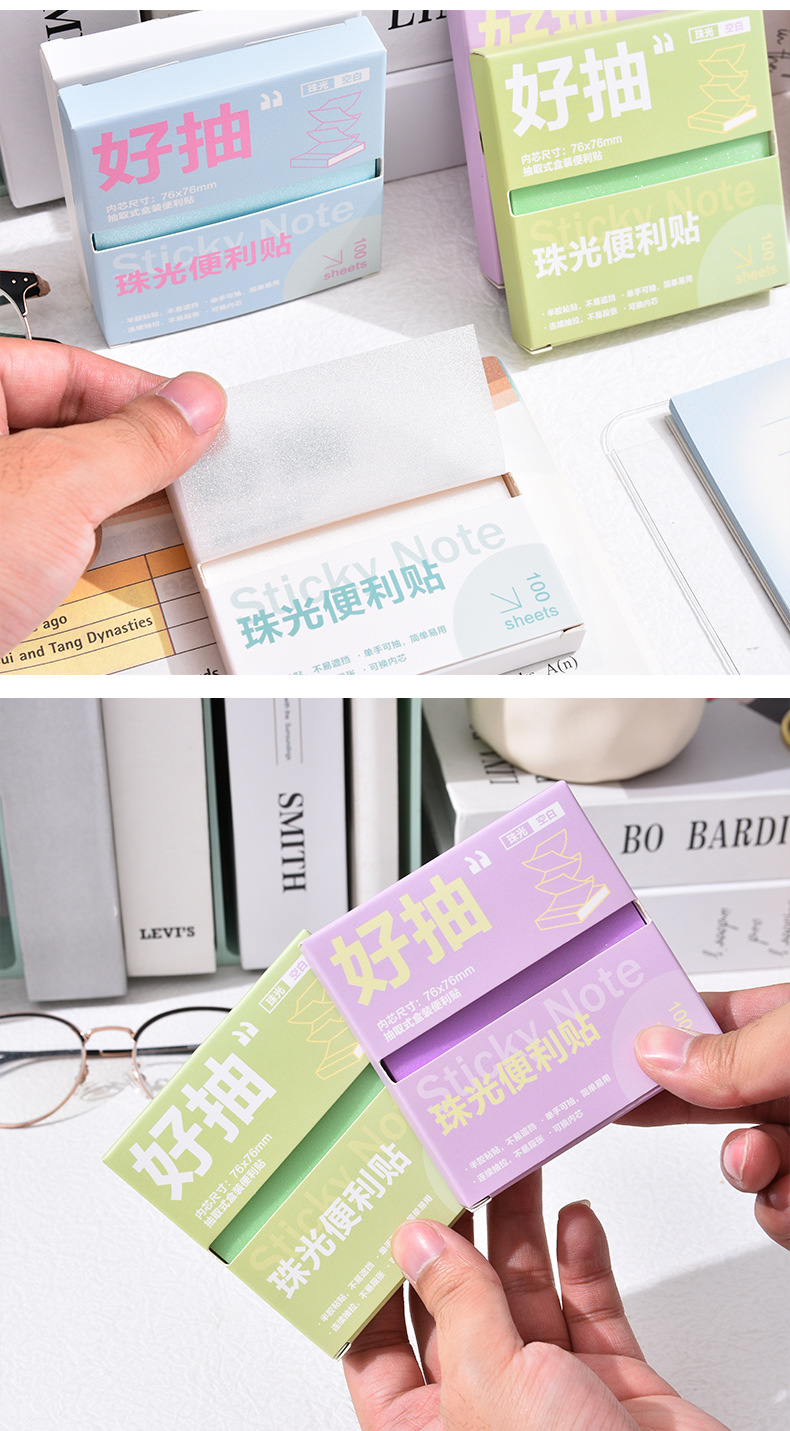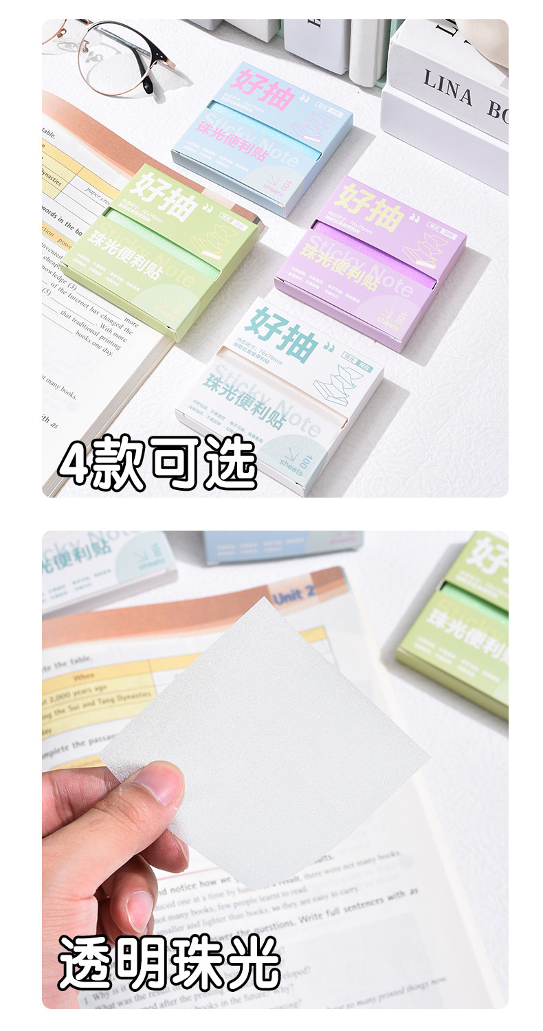 진주빛 투명 스티커 메모 풀아웃 기능 고급스러운 학생 메모 패드 메모 용지 스티커 찢을 수 있는 메시지스토어 가기
