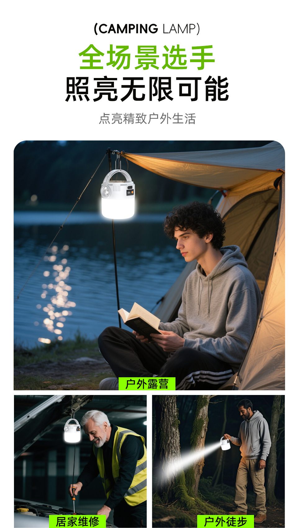 • [958-캠핑등] 이중 목적 충전 + 전원 표시 + 원거리 및 근거리 조절 가능