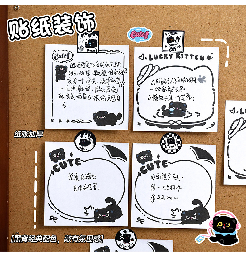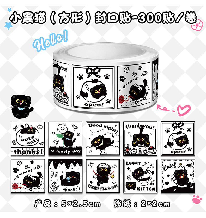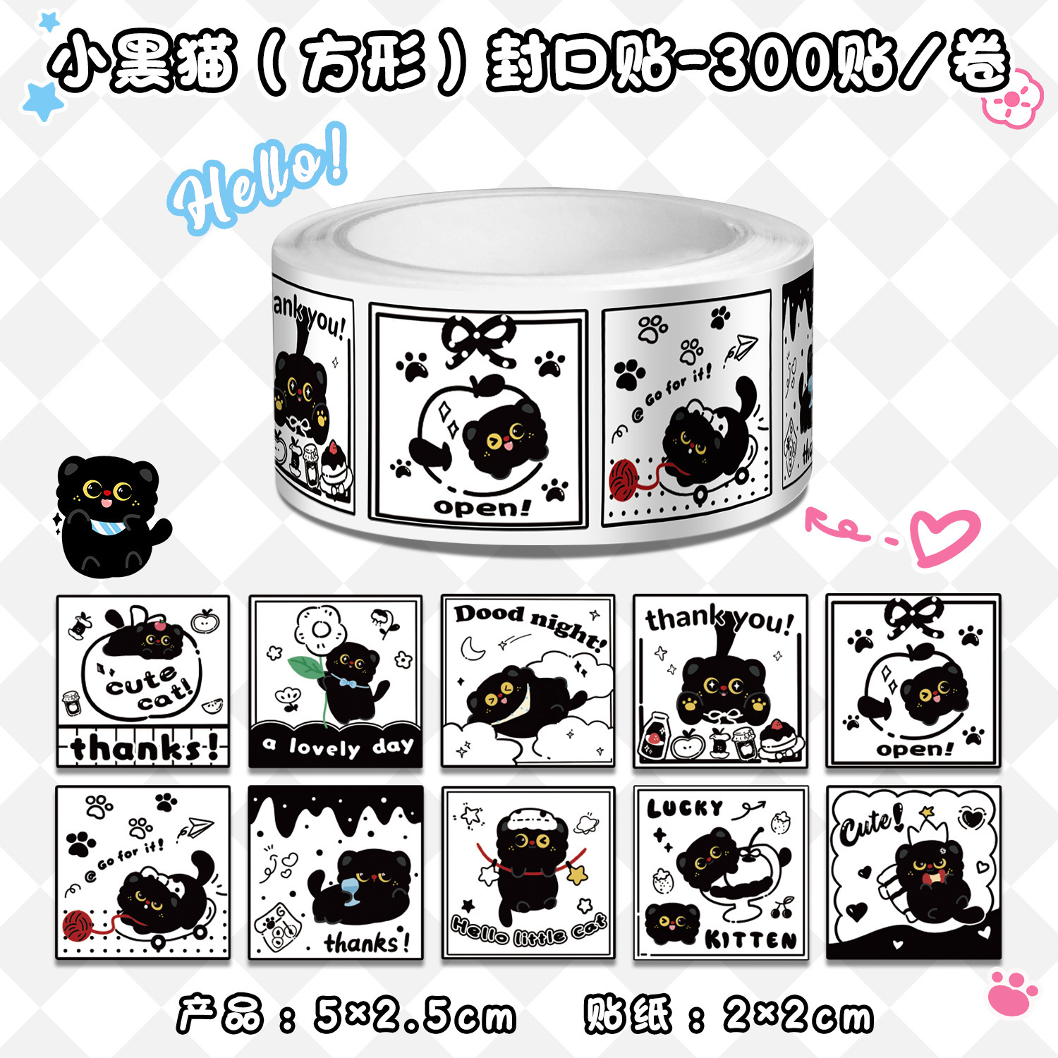 검은 새끼 고양이 롤링 씰링 스티커 귀여운 고양이 자체 접착 핸드북 장식 스티커 diy 작은 패턴 스티커스토어 가기