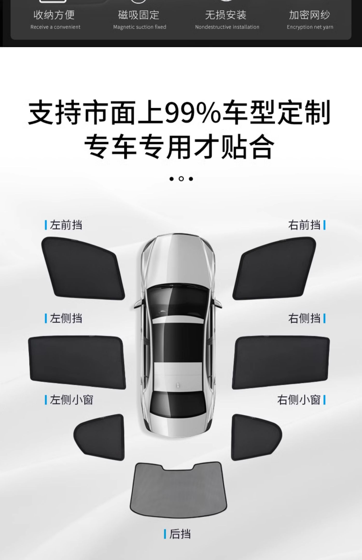 이상적인 L6/L7/L8/L9one 자동차 측면 창 차양, 자외선 차단 및 단열 창 차양, 개인 정보 보호 커튼에 적합스토어 가기