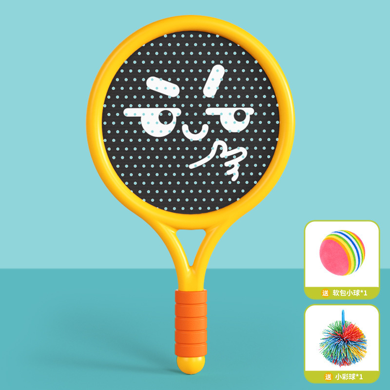 • 노란색 미끄럼 방지 라켓 {[라켓 2개] + 무지개 공 1개 + 털 공 1개