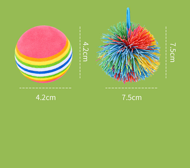 • 노란색 미끄럼 방지 라켓 1개 + 무지개 공 1개 + 털 공 1개