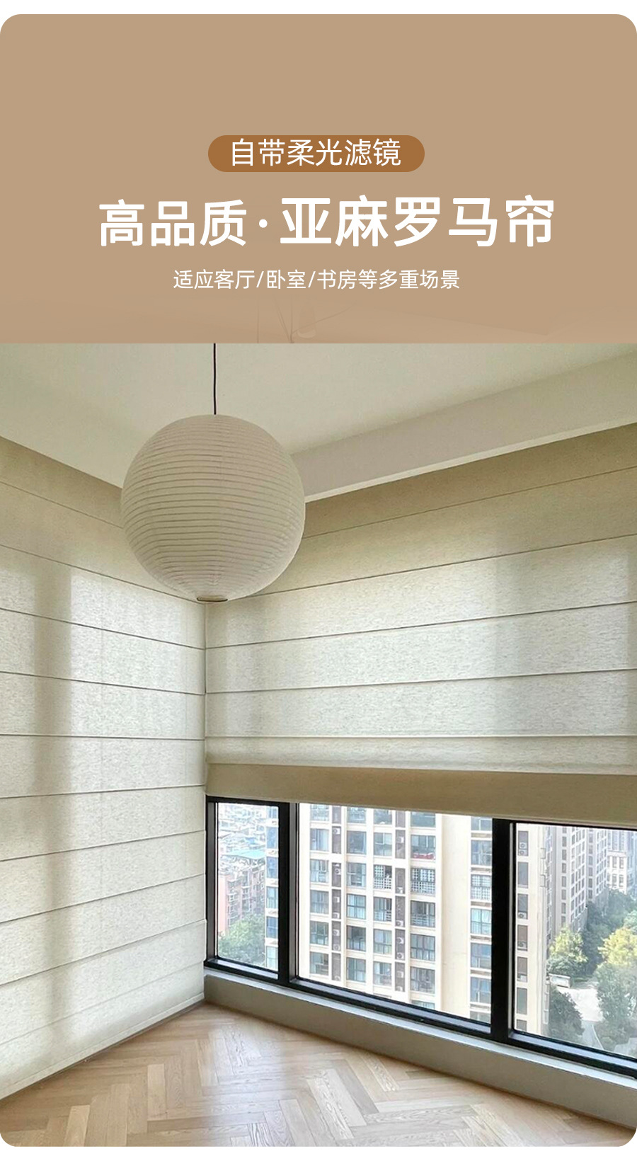 린넨 로만 블라인드, 암막 거즈 커튼, 투광 불침투성 거실 발코니 차양, 전동 리프팅 블라인드스토어 가기