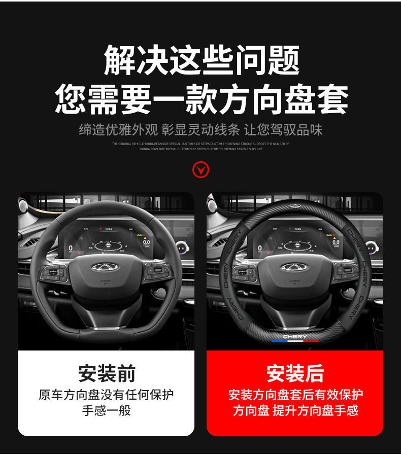 Chery Tiggo 8 Tiggo 7 Arrizo 5E Arrizo GX Tiggo 5x Tiggo 3 여성용 가죽 스티어링 휠 커버 탄소 섬유스토어 가기