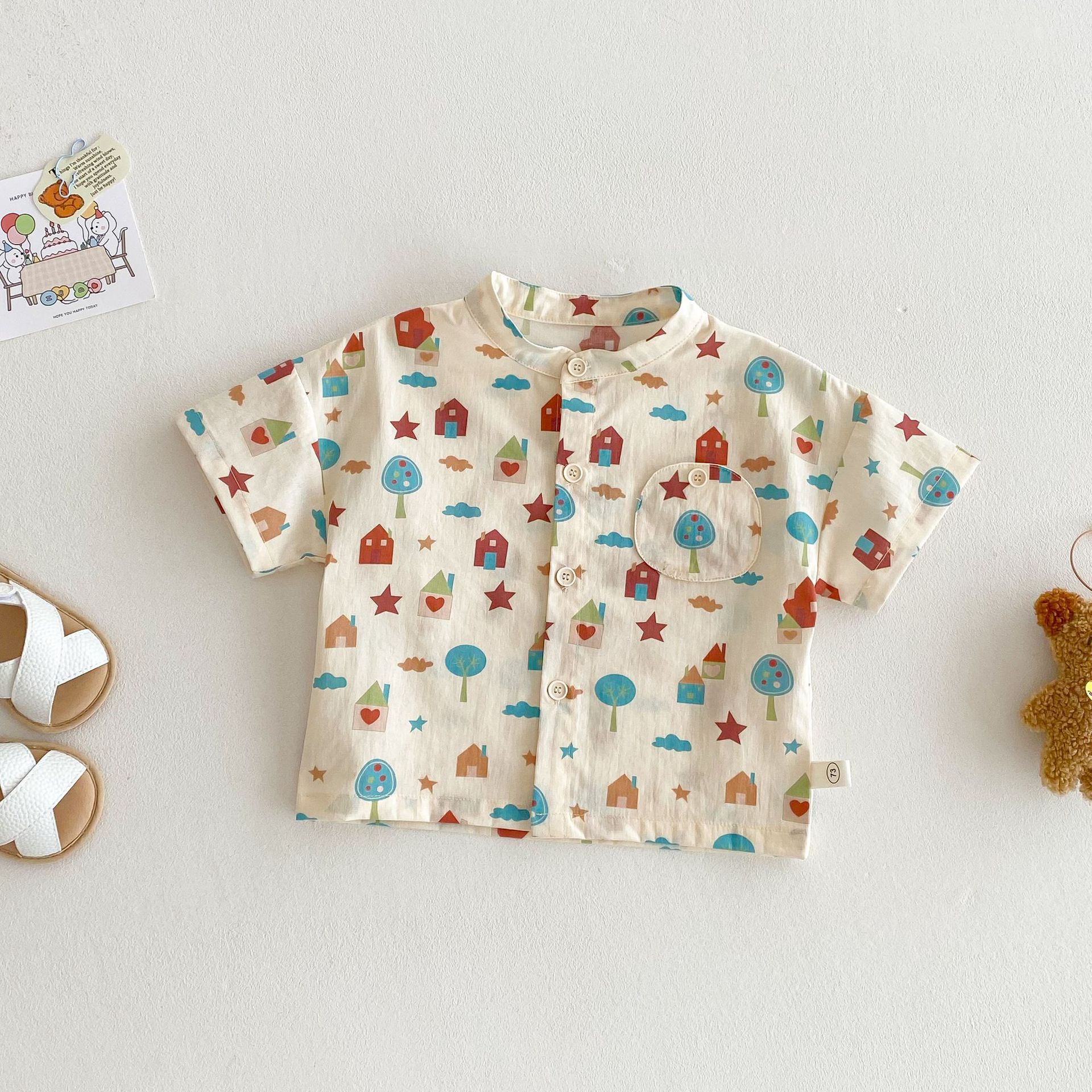 어린이 만화 셔츠 2025 새로운 여름 소녀 전체 인쇄 셔츠 아기 패션 한국어 여름 탑스토어 가기