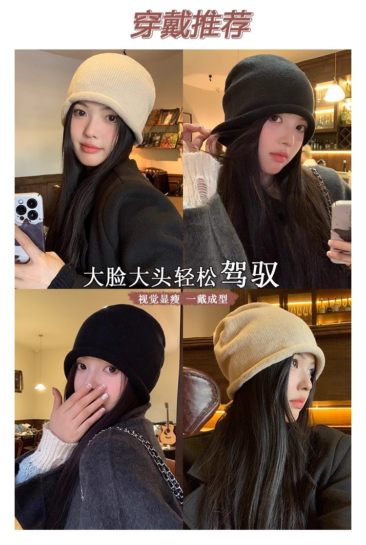 모자 여성 가을 겨울 모직 모자 큰 머리 둘레 작은 얼굴 보여주는 방한 모자 졸라매는 끈 푹신한 모자 롤업 니트 모자 캐주얼 모자스토어 가기